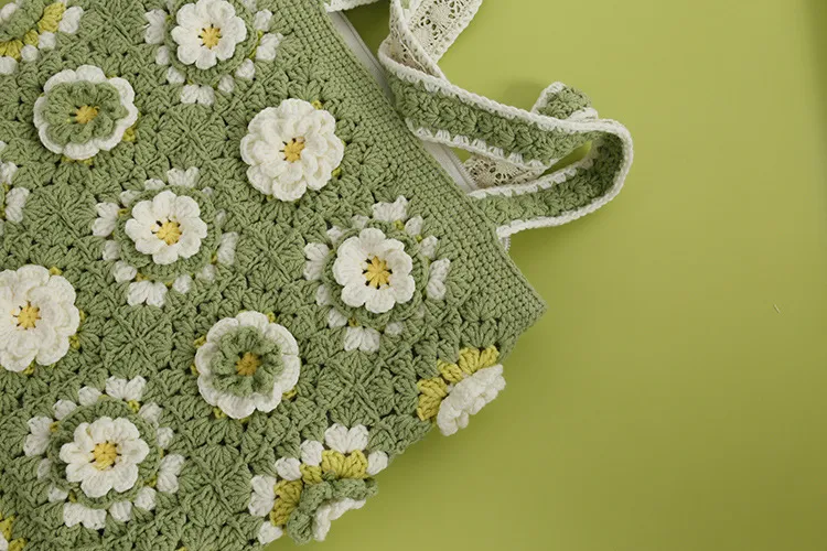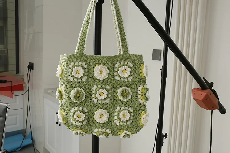 This crocheted bag offers an unparalleled blend of style, functionality, and affordability. Its handcrafted design ensures you own a unique and high-quality piece at a reasonable price point.