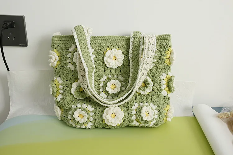 The Matcha Laminate Wool Crocheted Women’s Bag is a unique, handcrafted accessory designed for women who appreciate artistry and functionality. With its soft wool texture and trendy matcha hue, this bag is both a fashion statement and a practical companion for your daily life. Whether you’re heading to a casual outing, a creative workspace, or a weekend event, this bag seamlessly combines charm, style, and practicality.