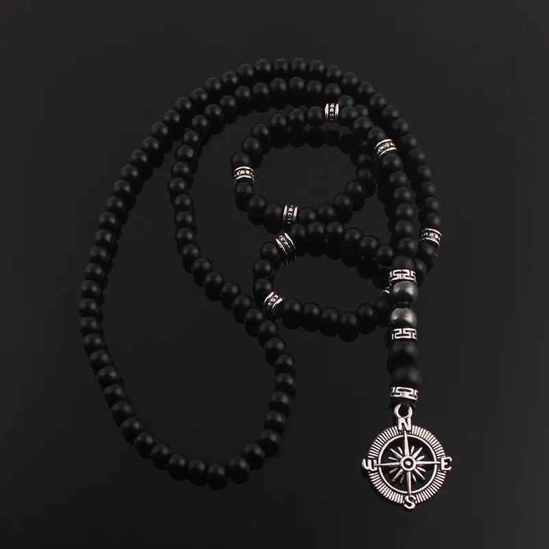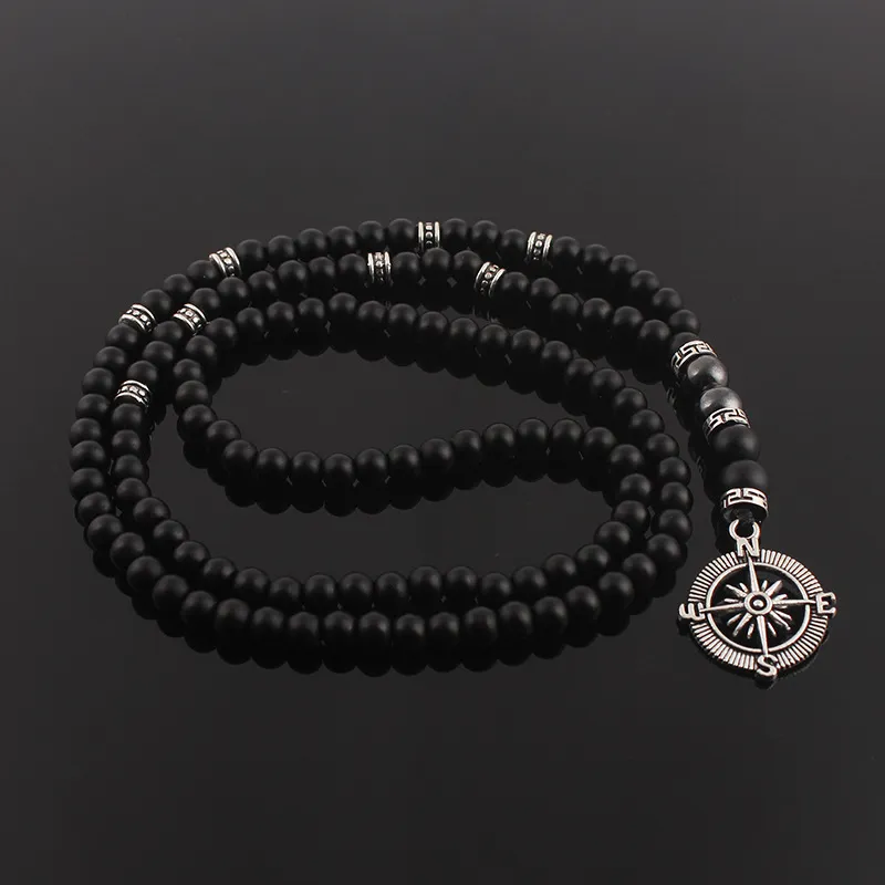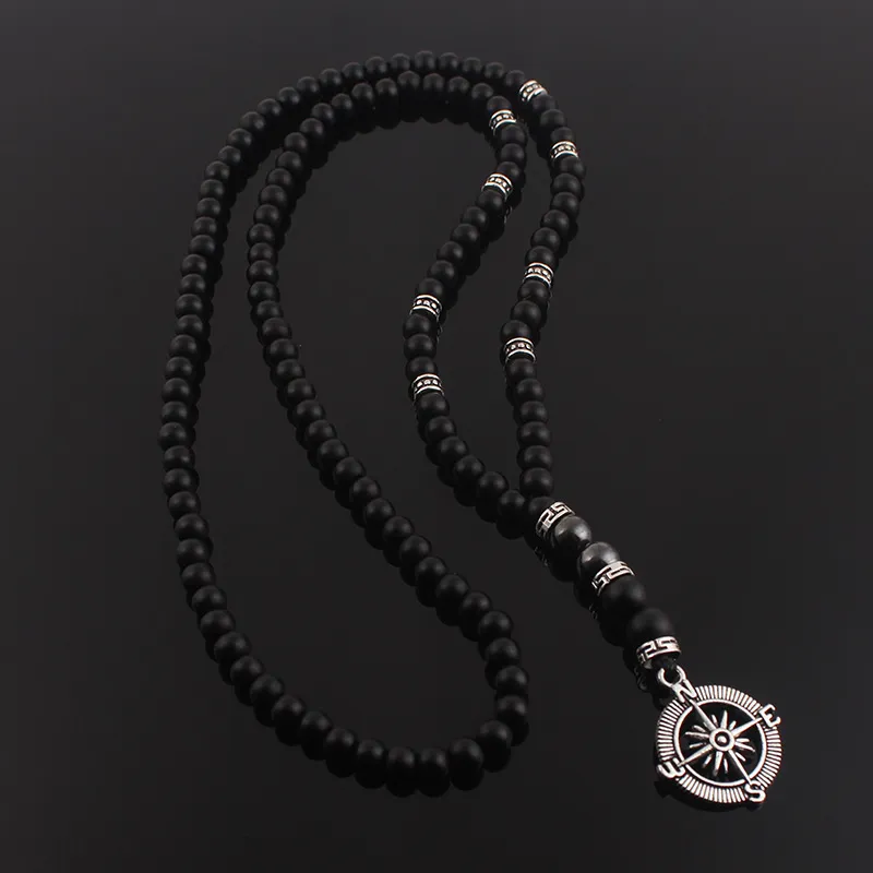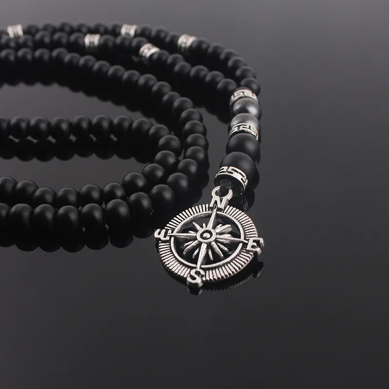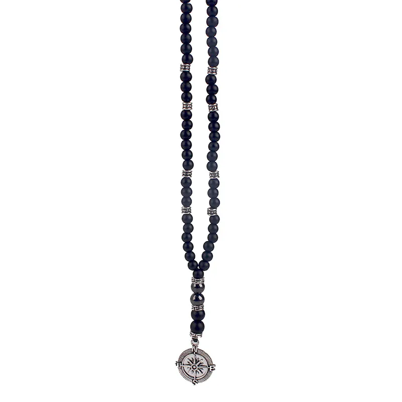 Matte Black Agate Alloy Compass Pendant