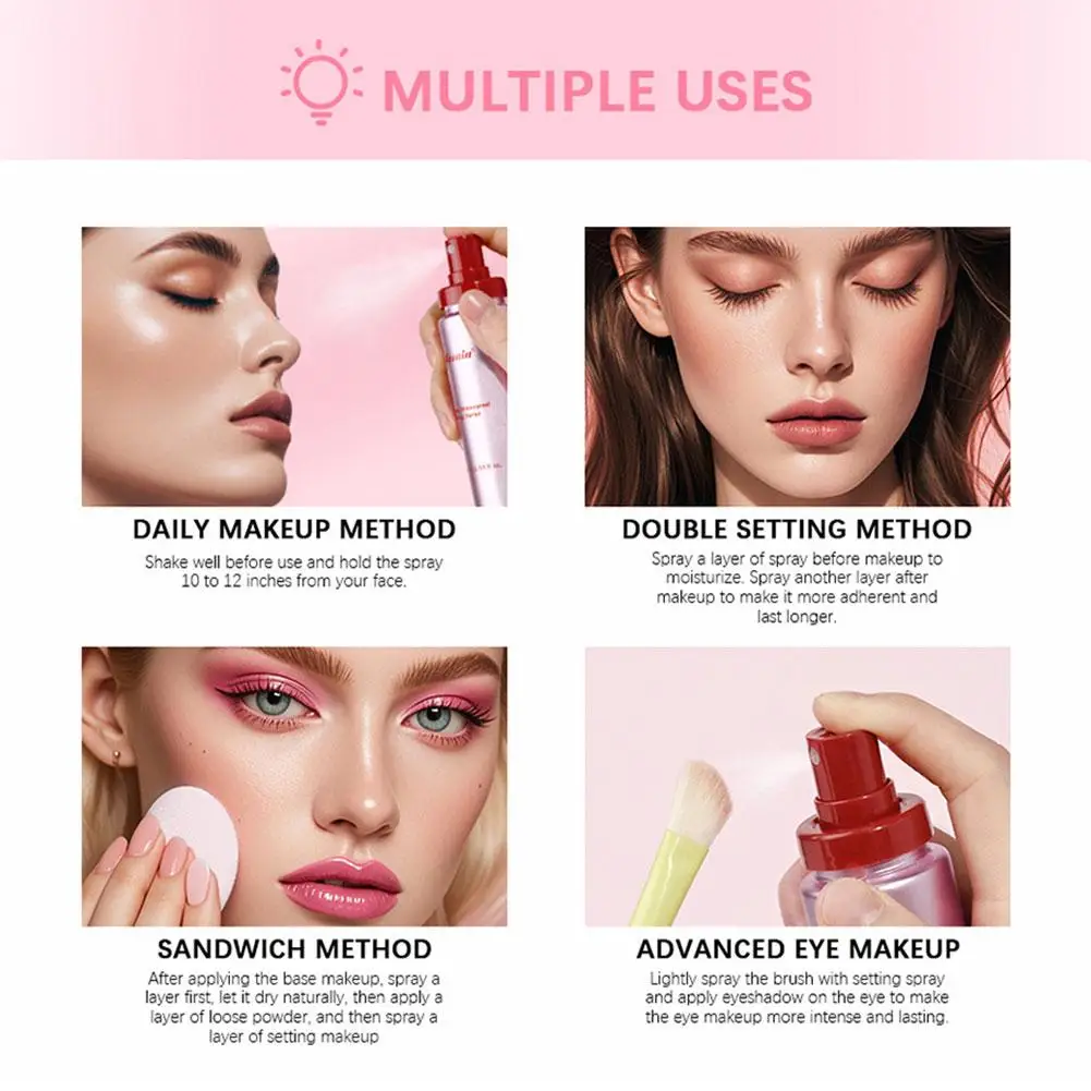 Unlike other setting sprays that may leave your skin feeling tight or sticky, this setting spray offers a non-sticky finish that is lightweight and breathable. It dries quickly to ensure your makeup stays comfortable and fresh without any heavy residue, making it suitable for all skin types.
