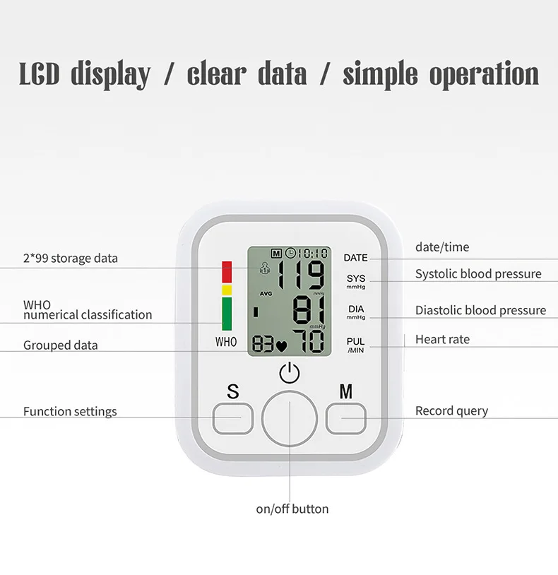 User-Friendly Design: The monitor features a simple, one-button operation, making it easy for anyone to use. The adjustable