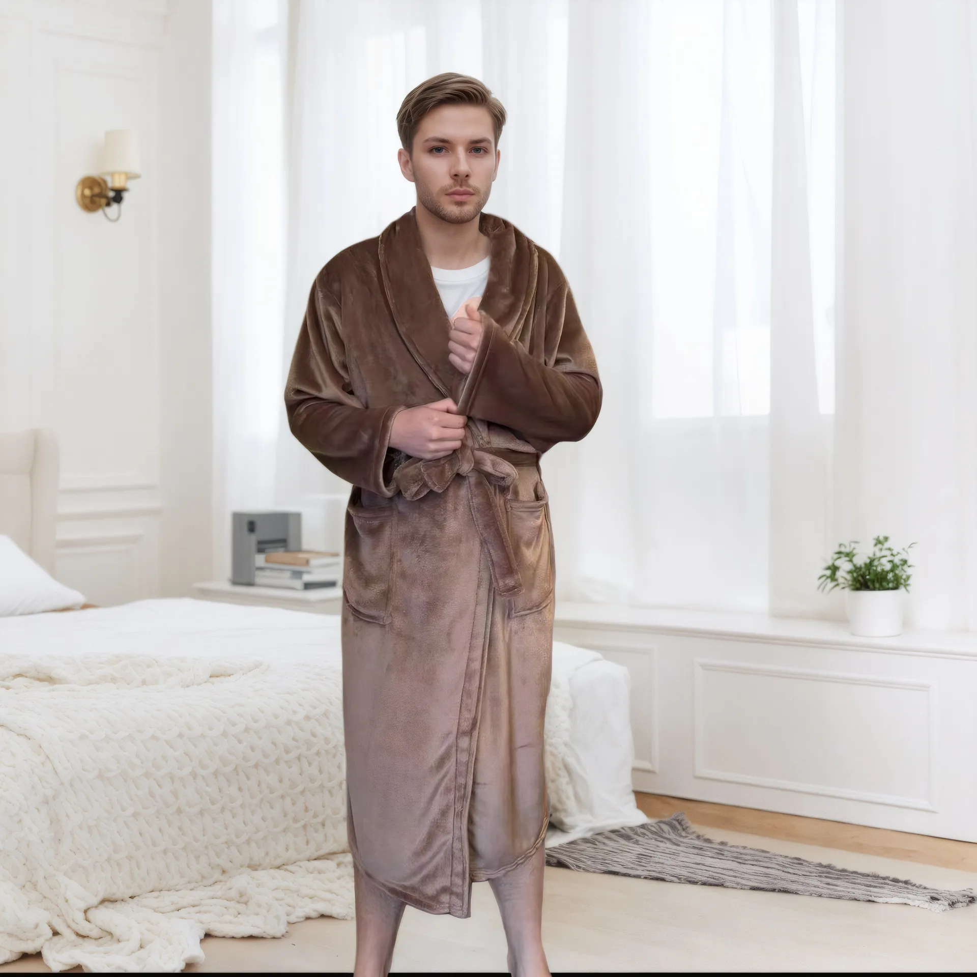 A men’s bathrobe is not just a luxury; it's a necessity that elevates your daily routine. Whether you're looking to unwind after a long day, enjoy a peaceful morning, or just stay cozy at home, our men's bathrobe offers the ultimate blend of comfort, style, and practicality. Invest in a high-quality bathrobe that will provide you with long-lasting comfort and make you look forward to your relaxation time every day.