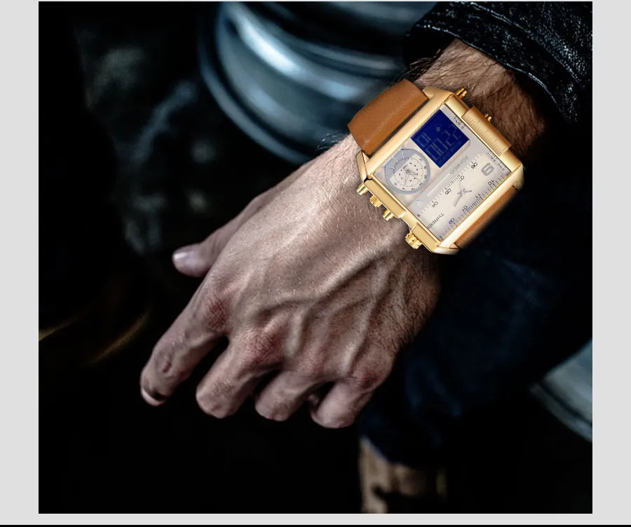 The modern rectangular dial paired with a luxurious leather strap makes this watch the perfect combination of fashion and functionality. It’s an accessory that not only helps you keep track of time but also makes a bold statement. Whether you’re dressing for a casual day or a formal event, this watch will complement any outfit.