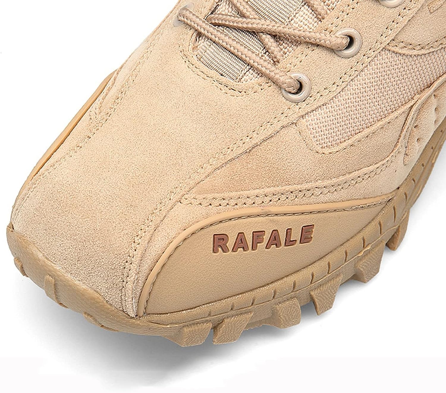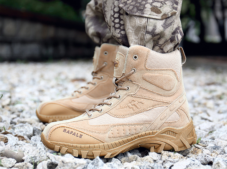 The upper of these men's combat boots is crafted from waterproof suede leather, ensuring durability and scratch resistance. The combat boots' outsole is made from lightweight rubber, and the curved edges of the outsole are seamlessly integrated with the uppers, enhancing the overall durability of these combat boots.
