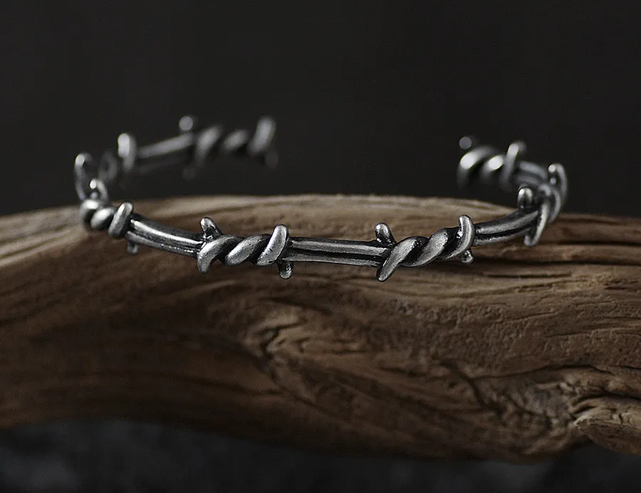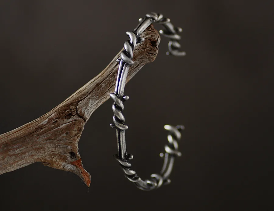 Men'S Bracelet Cuffs Twist Thorn Line Pulse Titanium Steel Geometric Bracelet Jewelry Viking Bracelet