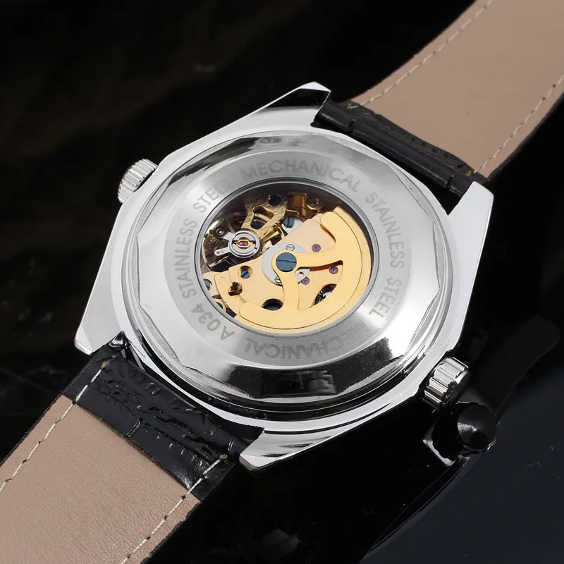 Introducing the Men's Business Casual Hollow-Out Large Dial Automatic Mechanical Watch, a stunning fusion of elegance and intricate craftsmanship designed for the modern man. This watch features a captivating hollow-out design that allows you to see the intricate mechanics of its automatic movement, showcasing the artistry that goes into its creation. The large dial not only makes a bold statement but also enhances readability, ensuring you can effortlessly check the time while making a stylish impression in any setting.Crafted with high-quality materials, this watch embodies durability and sophistication. The robust casing protects the delicate inner workings, while the luxurious finish adds a touch of refinement. The luminous hands and markers ensure visibility in low-light conditions, making it a practical choice for evening events or dimly lit environments. With a reliable automatic movement, this watch keeps perfect time, winding itself as you move, which means no need for batteries or winding mechanisms.Designed for comfort and versatility, the Hollow-Out Large Dial Automatic Mechanical Watch is equipped with an adjustable strap that fits securely on your wrist, providing all-day comfort whether you're at the office, attending a formal dinner, or enjoying a casual outing with friends. Available in various finishes, this timepiece seamlessly blends into your wardrobe, elevating your style with a sophisticated accessory that speaks to your discerning taste. Experience the perfect combination of luxury and functionality with the Men's Business Casual Hollow-Out Large Dial Automatic Mechanical Watch—a true masterpiece for the modern gentleman.