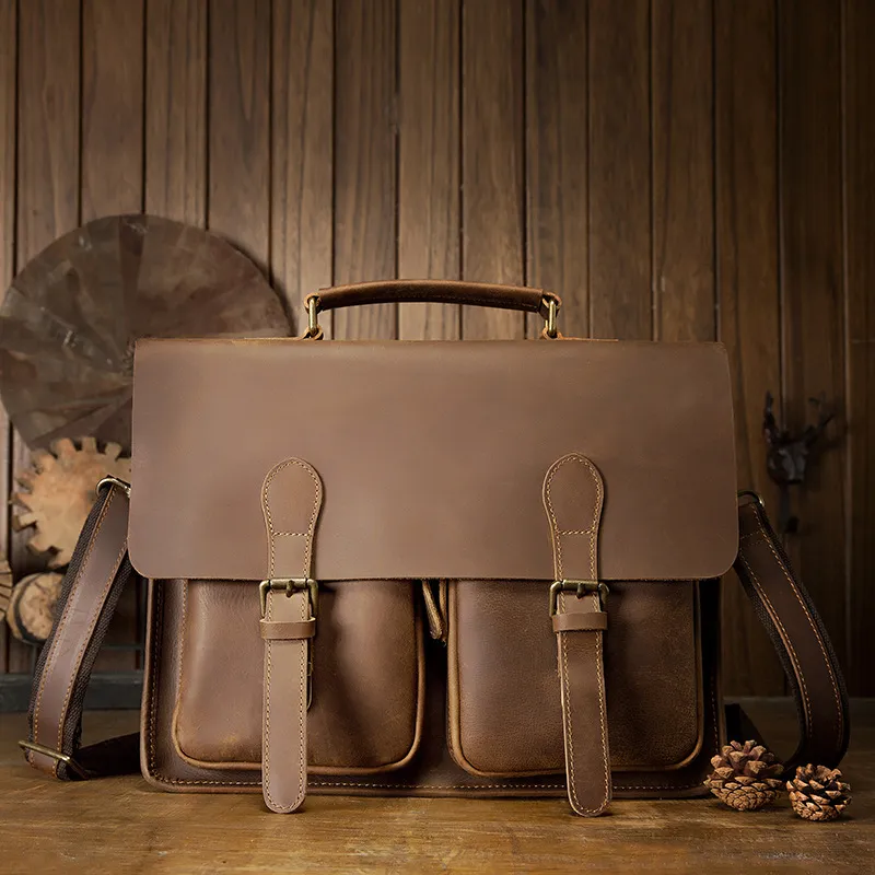 Men's Business Leather Shoulder Messenger Briefcase