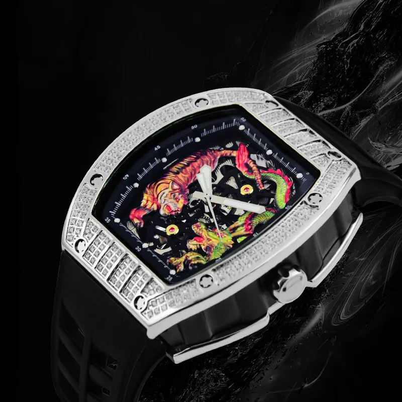 Men's Fashion Casual Automatic Mechanical Dragon Tiger Diamond-embedded Watch