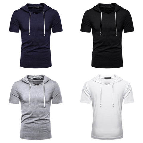 Men’s hooded solid short sleeve t-shirt is equipped with adjustable drawstring hood and short sleeve design for a pop style. The stylish