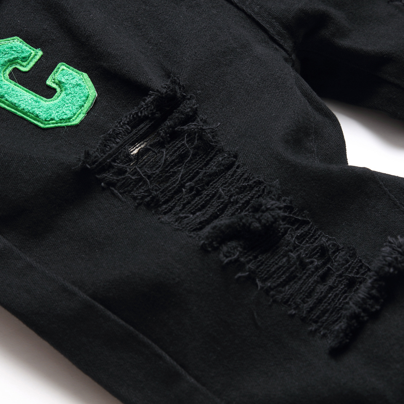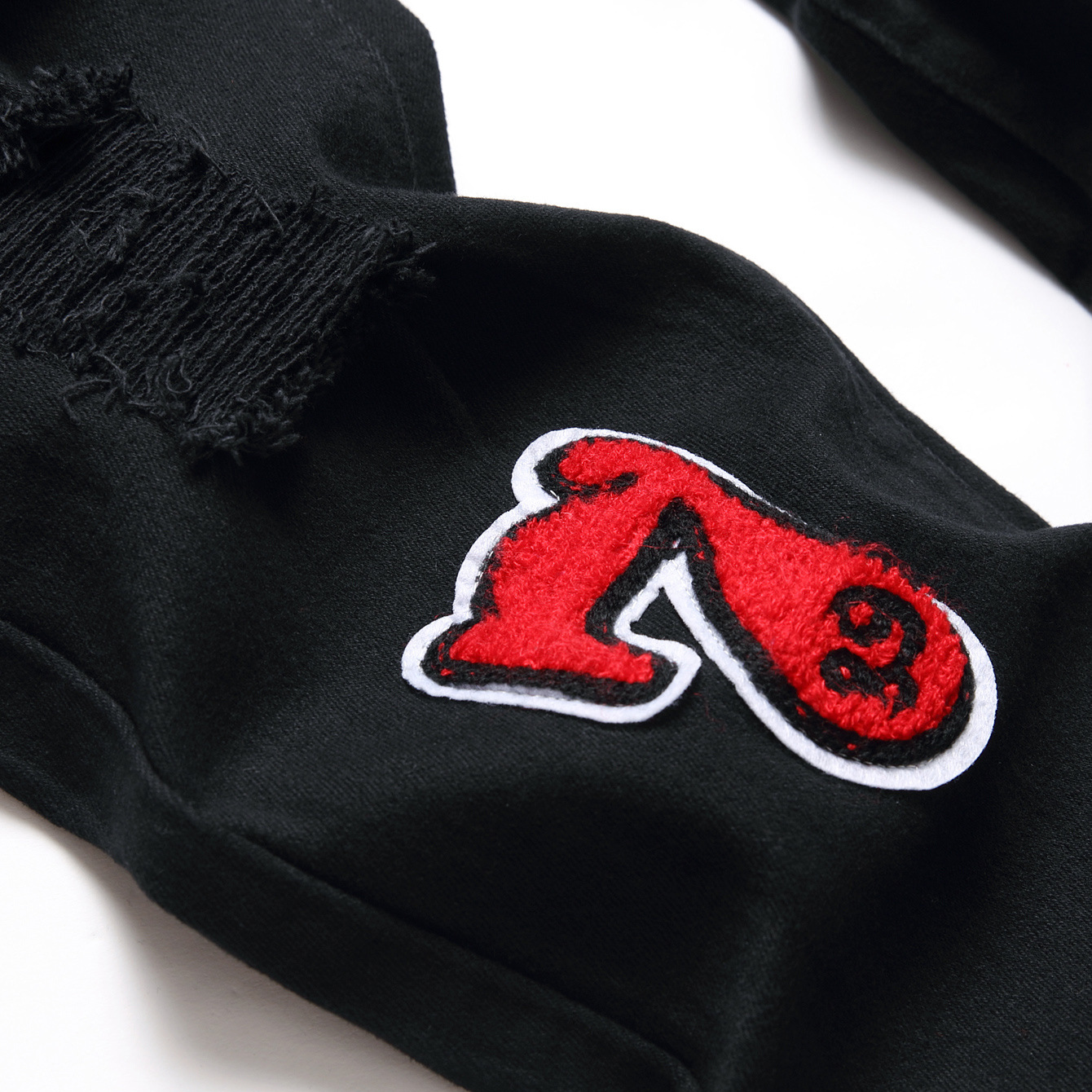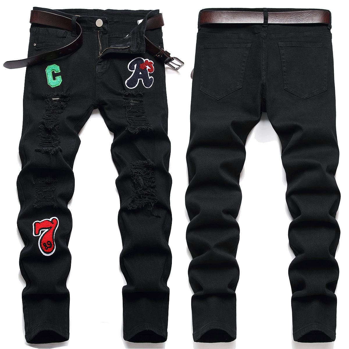 Men's Jeans Zhang Zai Pattern Micro-elastic Black Pants High Quality Fabric Slim-fitting Small Straight