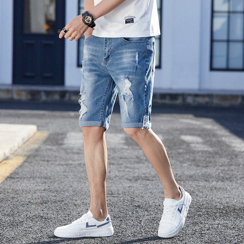 The Men's Loose Hole Denim Shorts are incredibly versatile and can easily be dressed up or down. Pair them with a simple t-shirt and sneakers for a casual day out, or elevate them with a polo shirt and loafers for a more polished look suitable for evening gatherings. The neutral color palette ensures they can be seamlessly integrated into any existing wardrobe, making them a highly practical choice for daily wear.