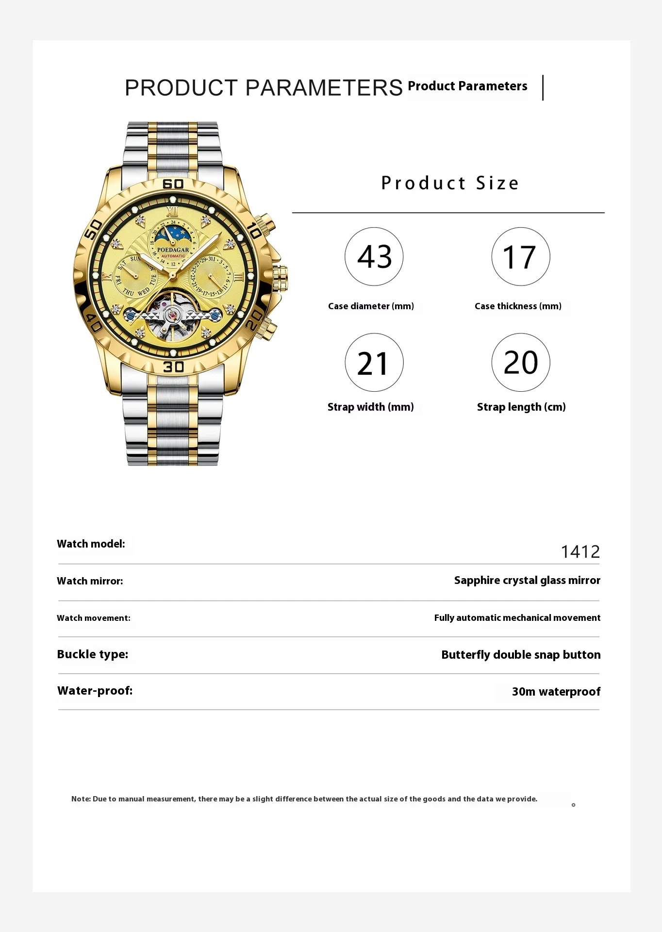 Men's Mechanical Watch Waterproof Luxury Multifunctional Men's Wrist Watch