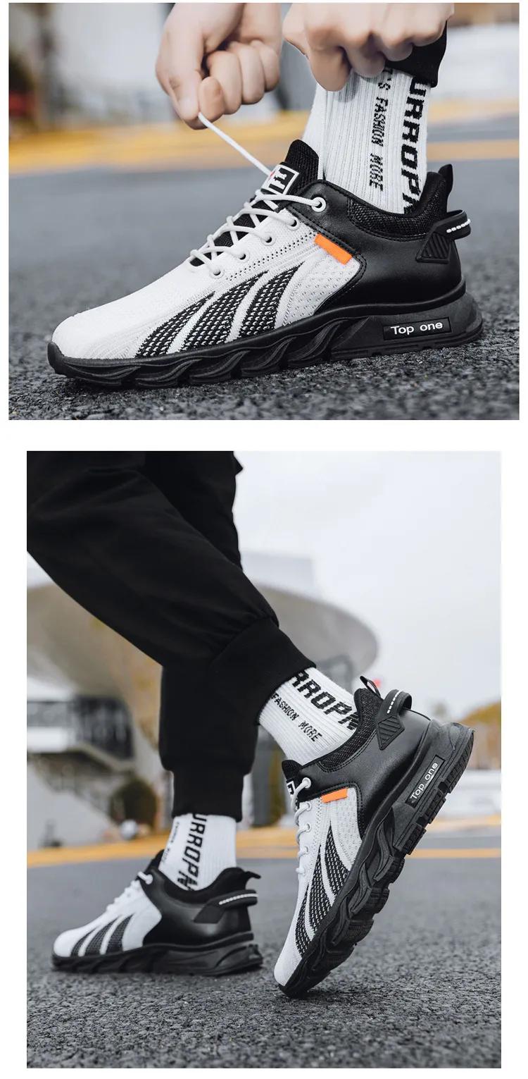 Men's Mesh Shoes Fashion Fly Knit Color-block Lace-up Sneakers Casual Lightweight Breathable Sports Shoes