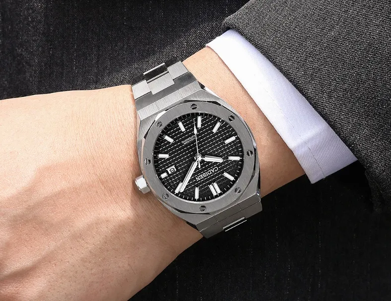 sophistication, making it an ideal accessory for meetings, formal events, and everyday use.Encased in premium stainless steel, the watch