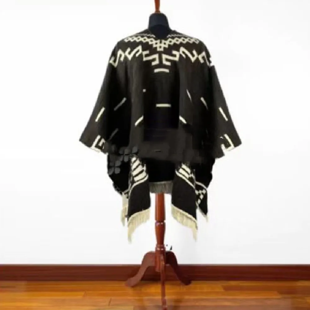 Knitted ponchos offer a cozy, textured appearance, perfect for creating a relaxed, bohemian look. These ponchos are typically made from wool or acrylic yarn and feature intricate knit patterns. Knitted ponchos are perfect for layering over casual outfits, adding both warmth and style.