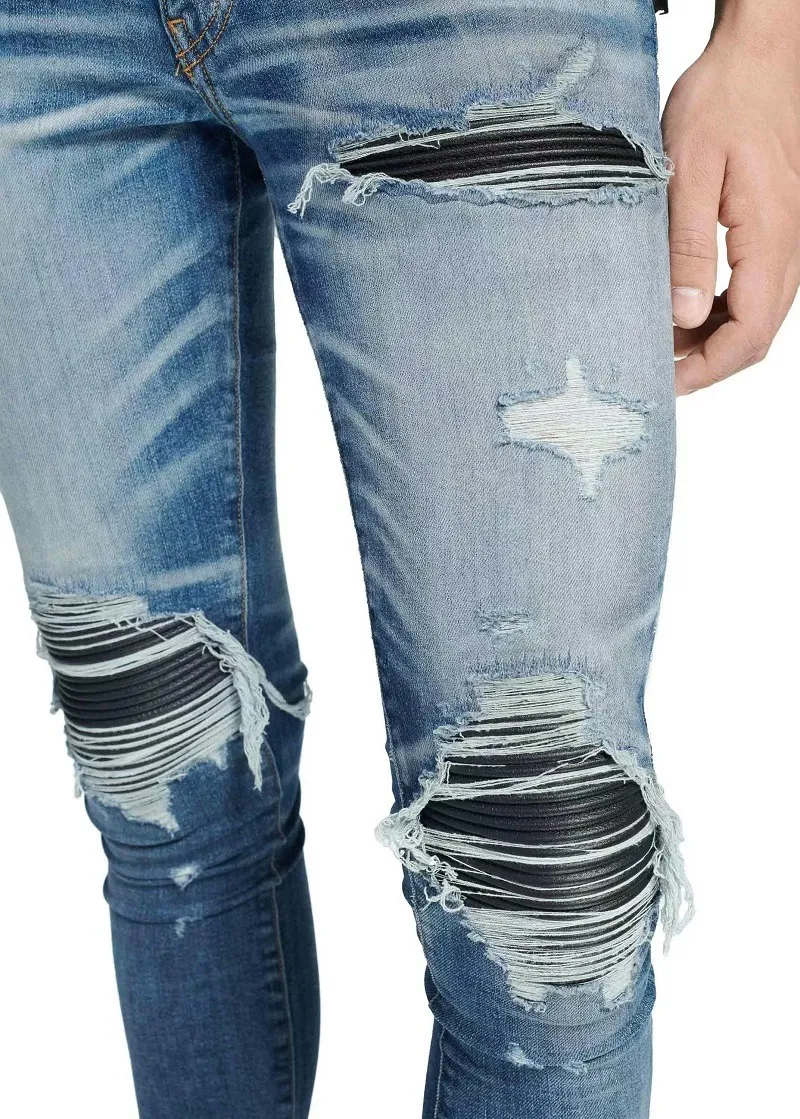 Fashionable and Statement-Making: The patched skinny jeans are perfect for men who want to add a bold,