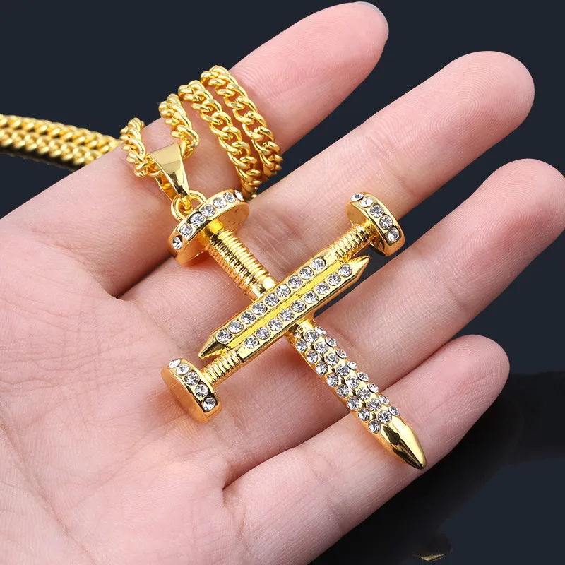 Men's Personality Nail Cross Full Diamond Punk Necklace