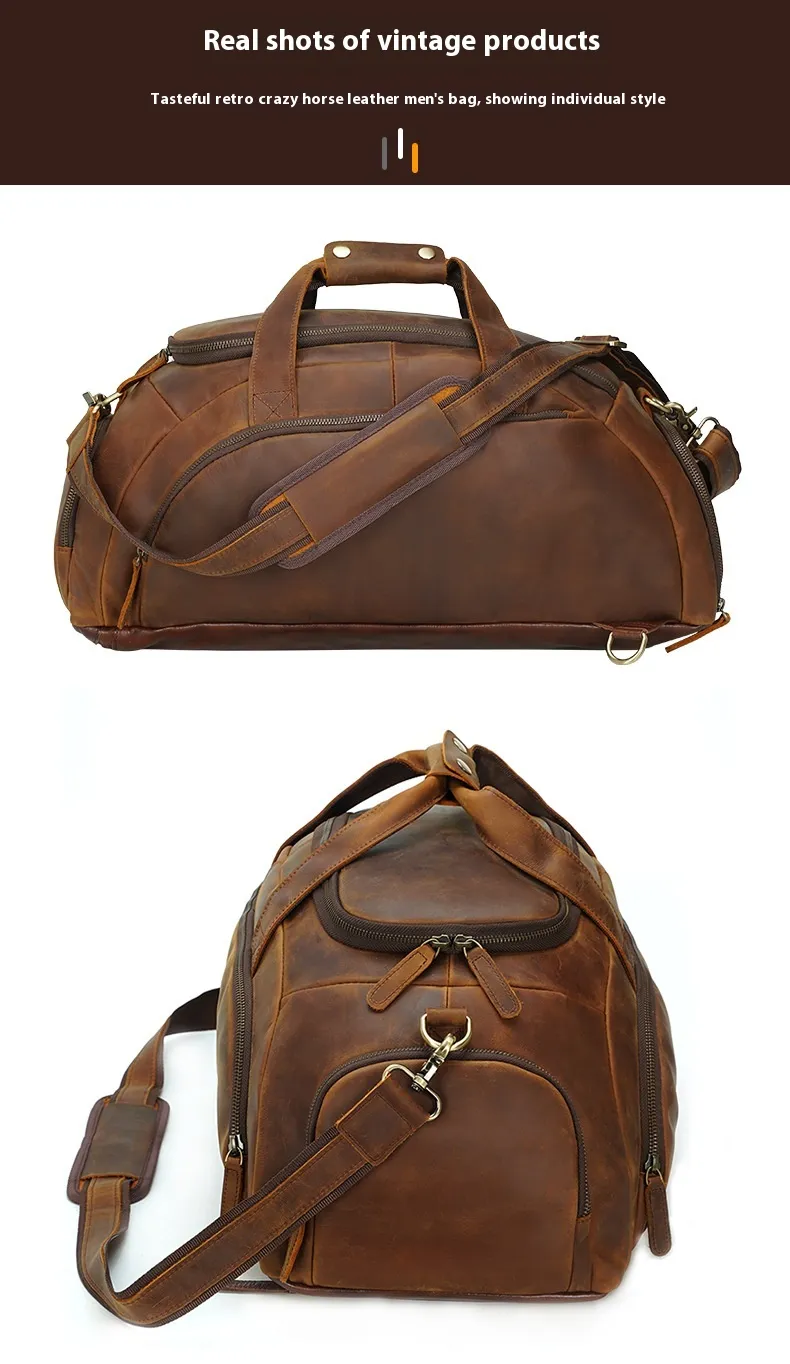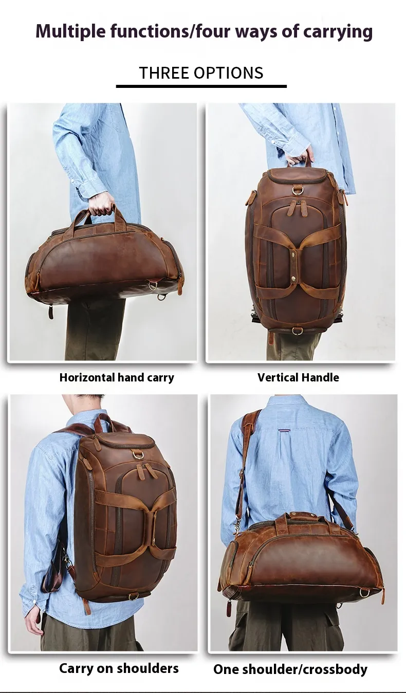 Men's Retro Cowhide Outdoor Large Capacity Backpack