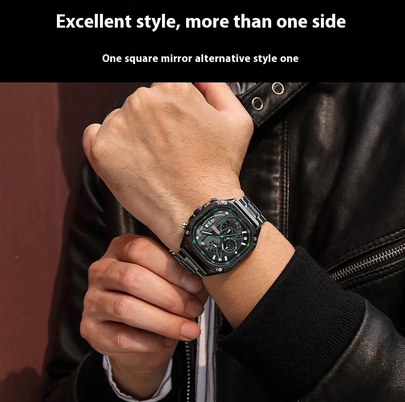 functionality, and rugged durability. Its square dial offers a modern, sophisticated aesthetic, making it an ideal accessory for both