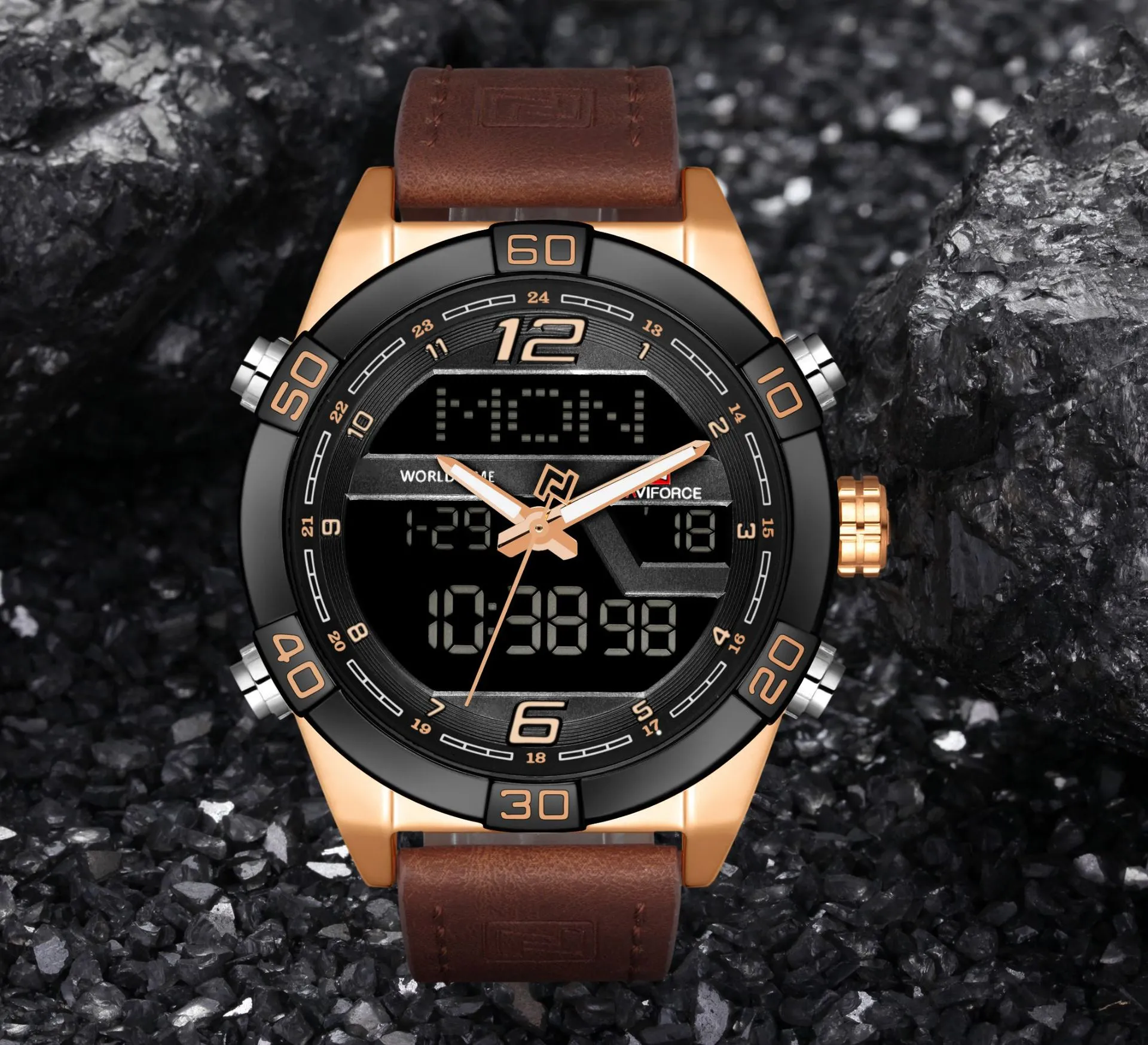The Men's LED Electronic Quartz Watch is the perfect combination of style, technology, and durability. Featuring a modern LED display and classic quartz movement, this watch offers both digital and analog timekeeping in one sleek package. Whether you're looking for a watch that can keep up with your busy lifestyle or one that adds a touch of sophistication to your wardrobe, this versatile timepiece has you covered.With its waterproof design (rated 3ATM or higher), this watch is built to handle daily activities, from handwashing to accidental splashes or rain, making it an ideal companion for everyday wear. The durable belt, available in both leather and silicone options, ensures comfort and longevity, while the stainless steel case adds a layer of protection against wear and tear.The LED backlight display enhances visibility in low-light conditions, allowing you to read the time at night or in dark environments easily. The watch also features date display and alarm functions, providing practicality and convenience for users who need more than just timekeeping. The quartz movement ensures accurate timekeeping, giving you reliability without the need for frequent adjustments.Designed with versatility in mind, this watch is perfect for both casual and formal occasions. Its sleek, modern design complements a wide range of styles, making it an excellent choice for men who want a watch that can transition seamlessly between work, leisure, and fitness activities.Whether you're looking for a gift for someone special or a durable, stylish watch for yourself, the Men's LED Electronic Quartz Watch combines elegance, functionality, and durability in one striking timepiece.