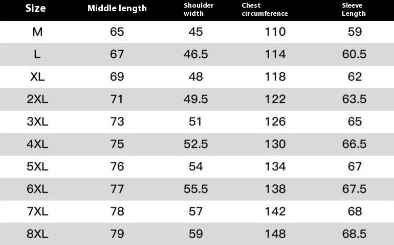Size: M,L,XL,2XL,3XL,4XL,5XL,6XL,7XL,8XL