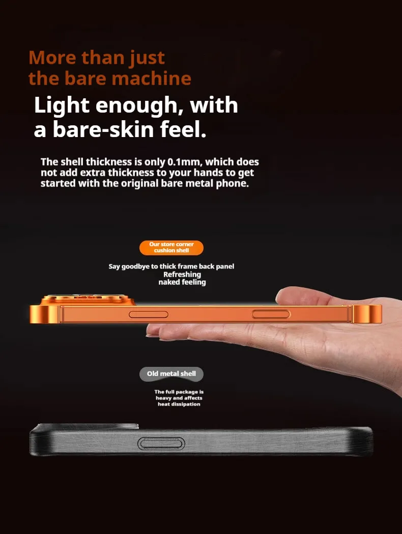 The frameless design ensures that the phone retains its original aesthetic, while the metal corner pads safeguard both the body and the camera lens. It’s perfect for professionals, students, and anyone who wants a slim yet protective phone case.