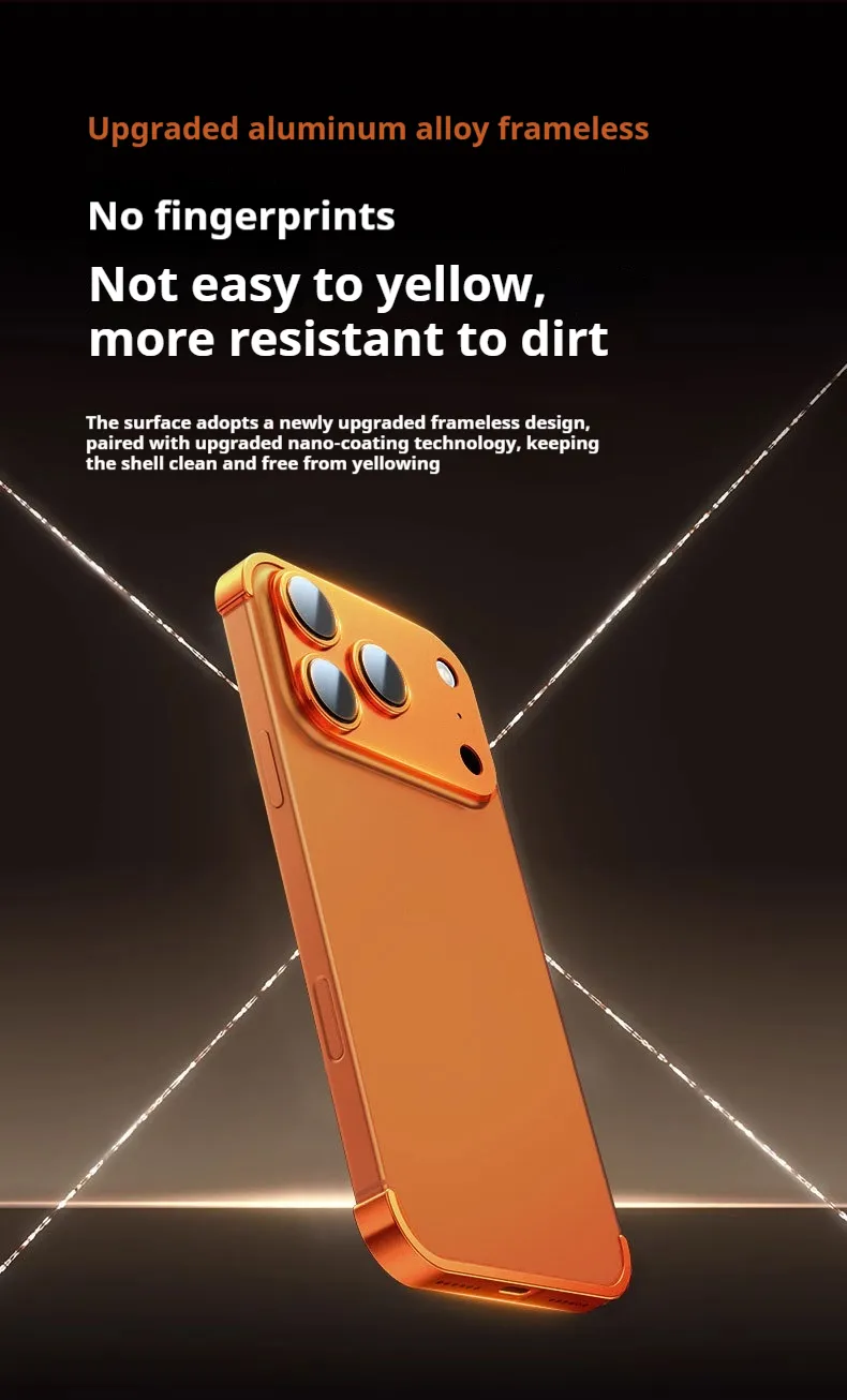 Protect your iPhone in style with the Metal Four-Corner Pad Ultra-Thin Frameless Lens Protective Cover – slim, strong, and stylish.