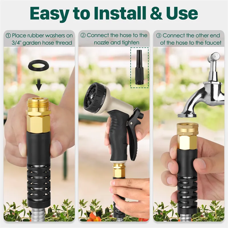 Perfect for garden enthusiasts, homeowners, and anyone looking for a robust, user-friendly solution, the Metal Garden Hose is the ultimate tool for maintaining your outdoor spaces. With its superior build and practical features, it makes an excellent addition to any garden or outdoor equipment collection.