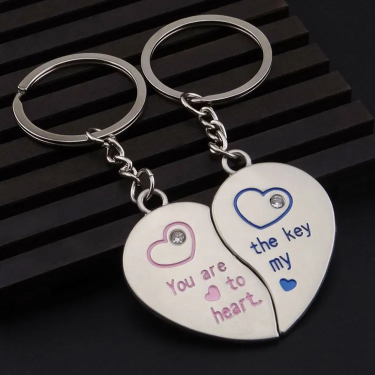 Metal Heart Shaped Couple Keychain Pendant Small Gift