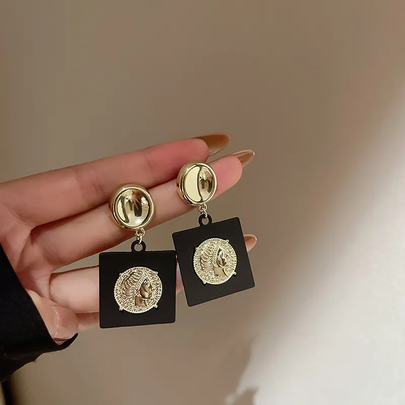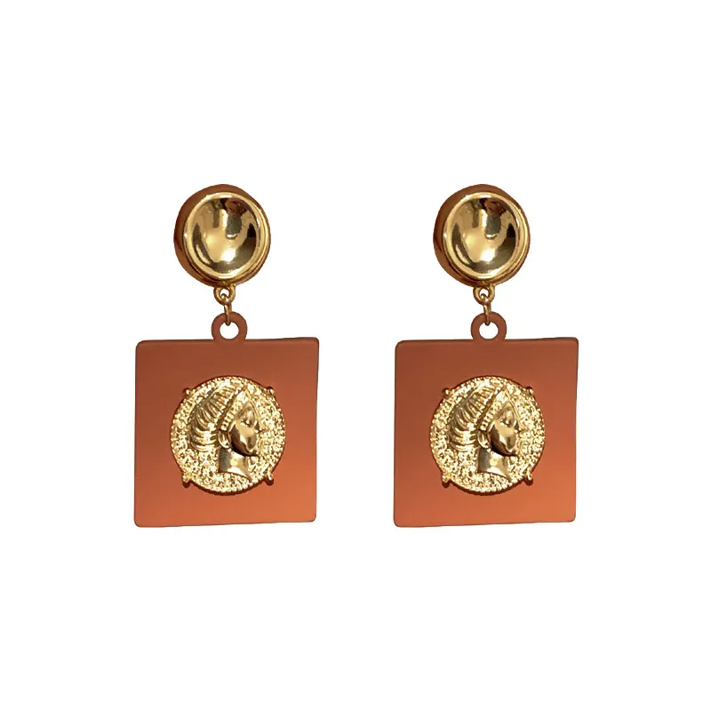 Product Description: Metal Portrait Square Earrings – Unique and Niche Jewelry