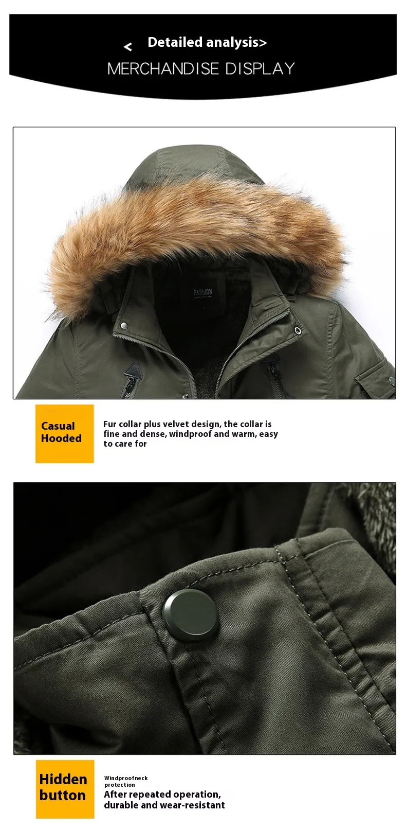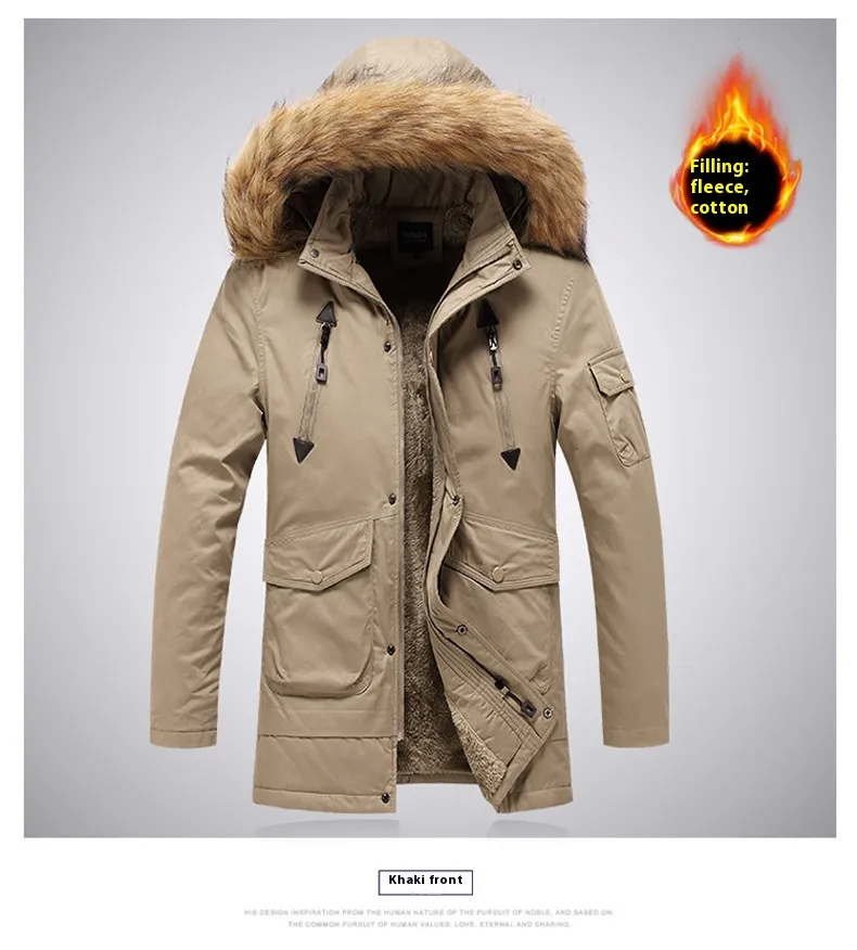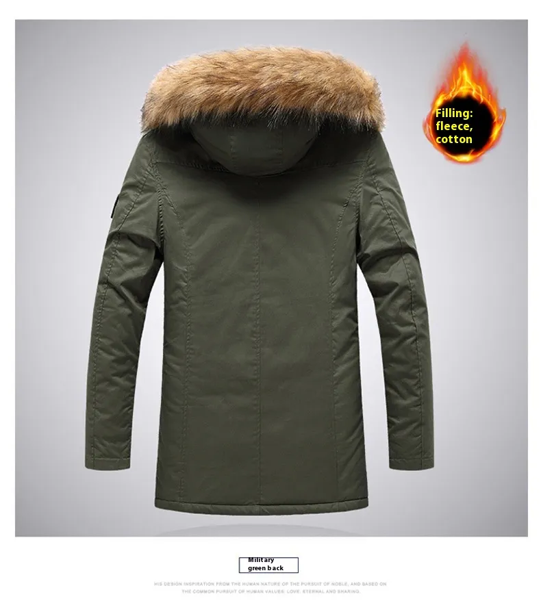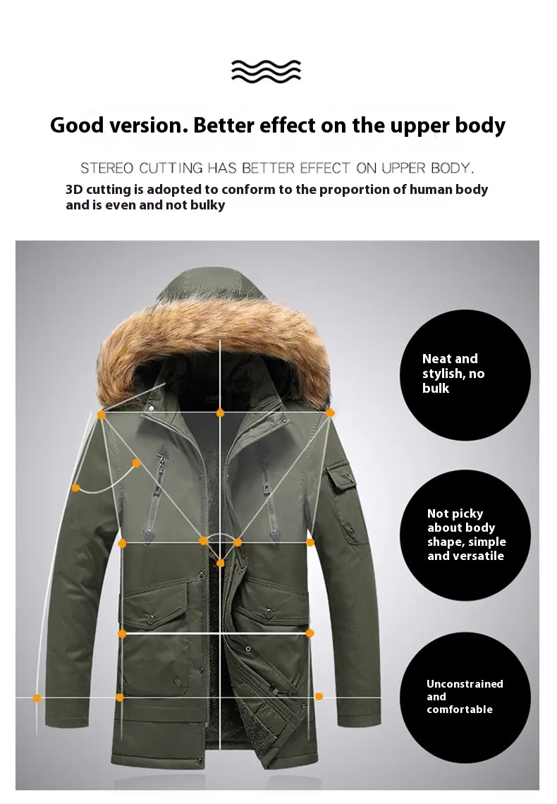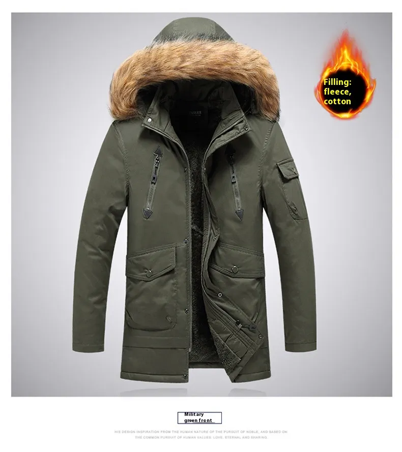 Mid-Length Autumn and Winter Jacket – Men’s Velvet Thermal and Thickened Cotton-Padded Coat