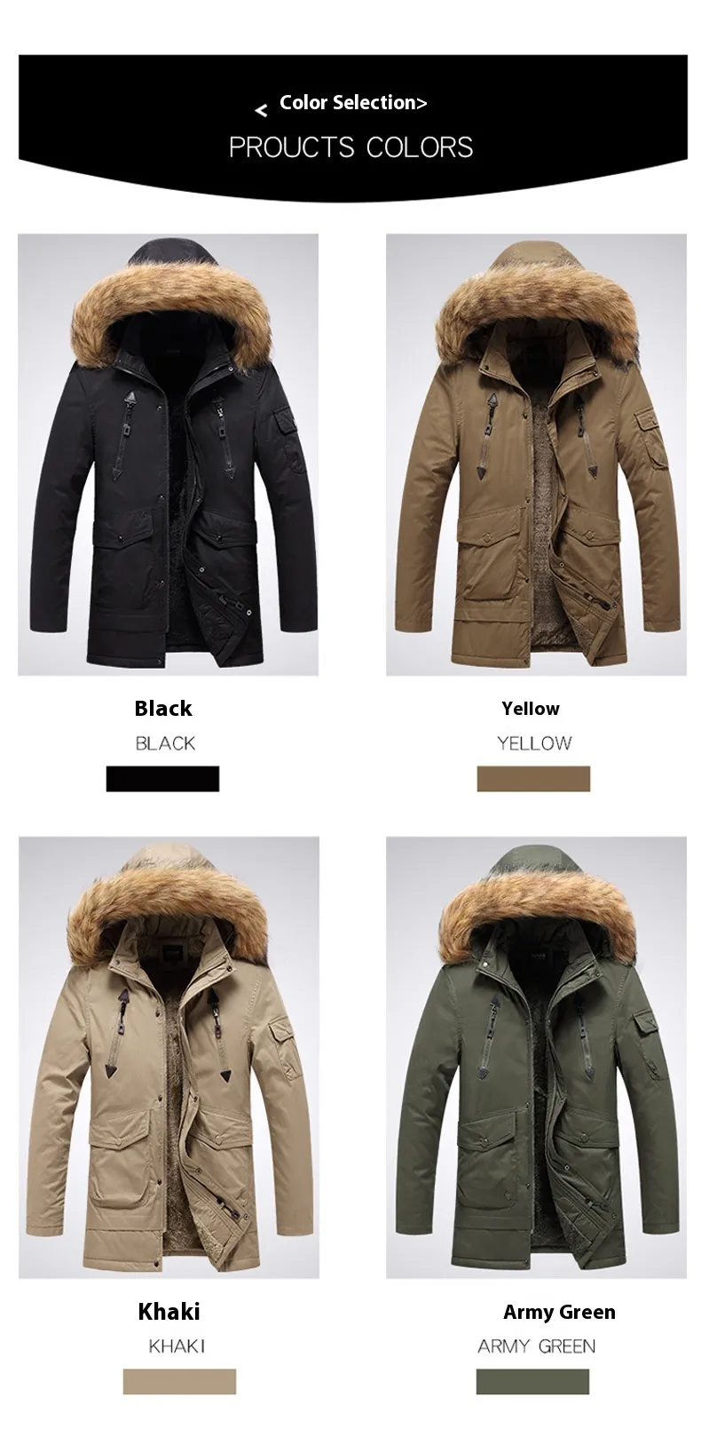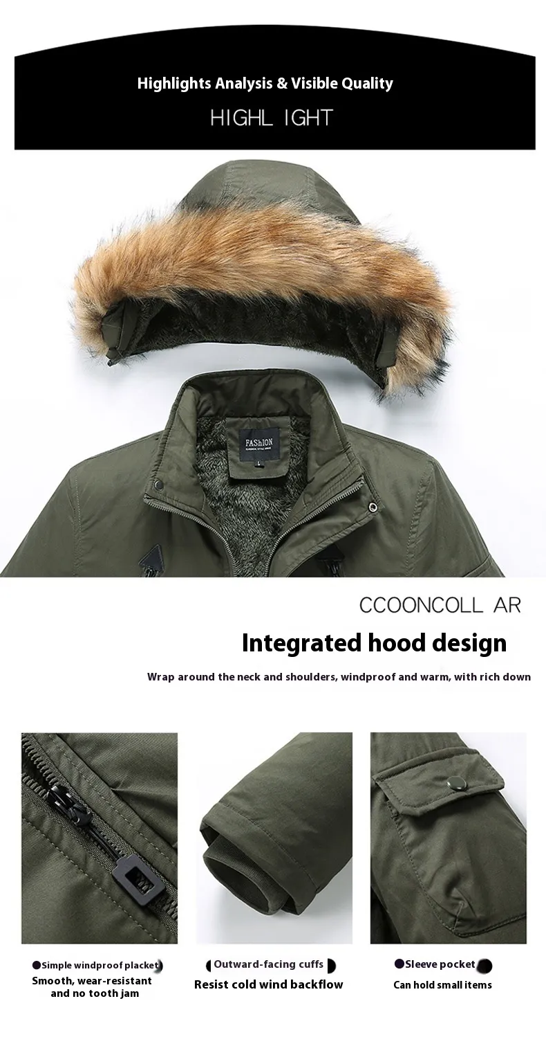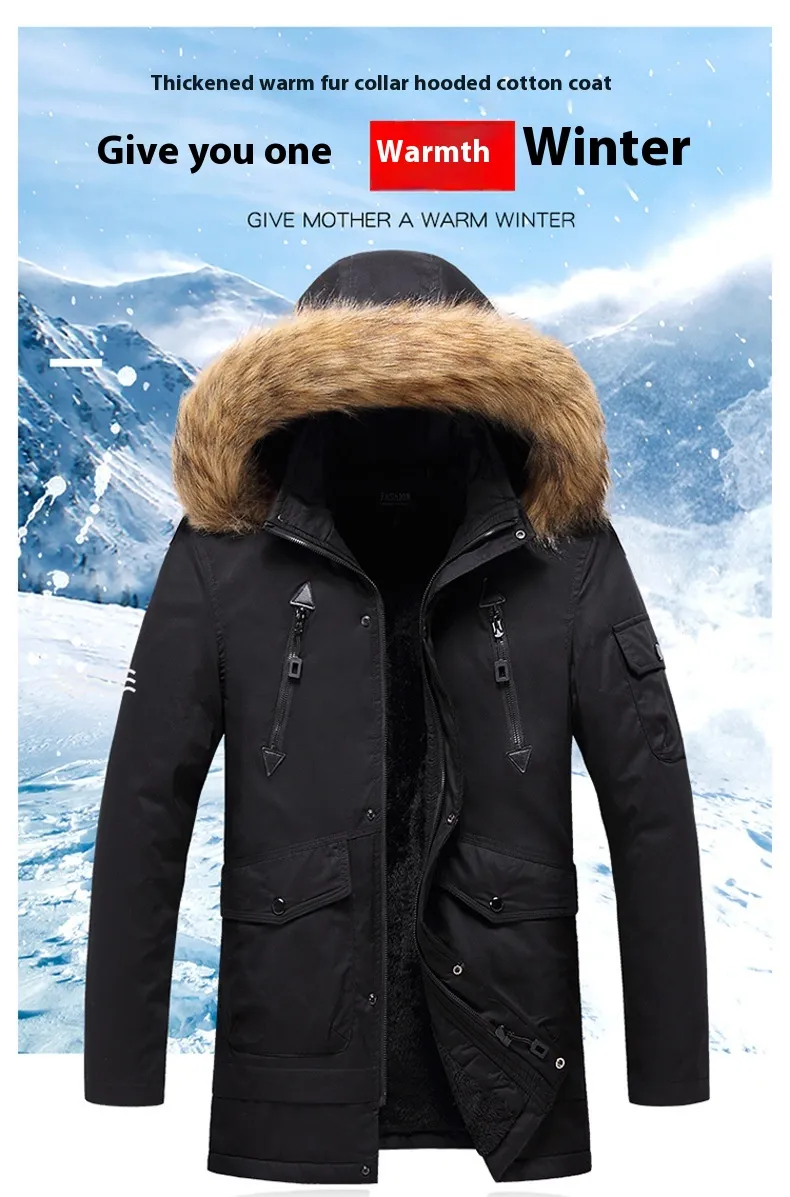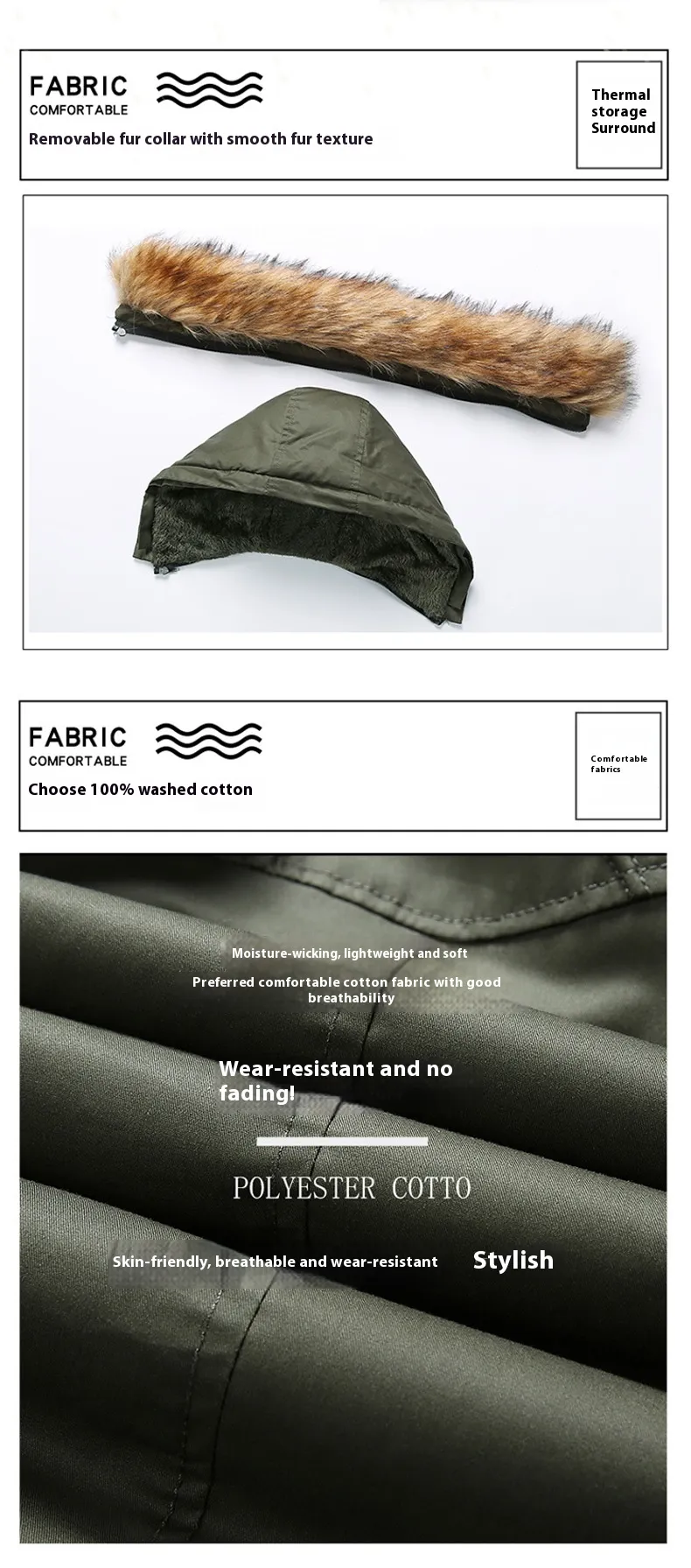 Mid-Length Autumn and Winter Jacket – Men’s Velvet Thermal and Thickened Cotton-Padded Coat