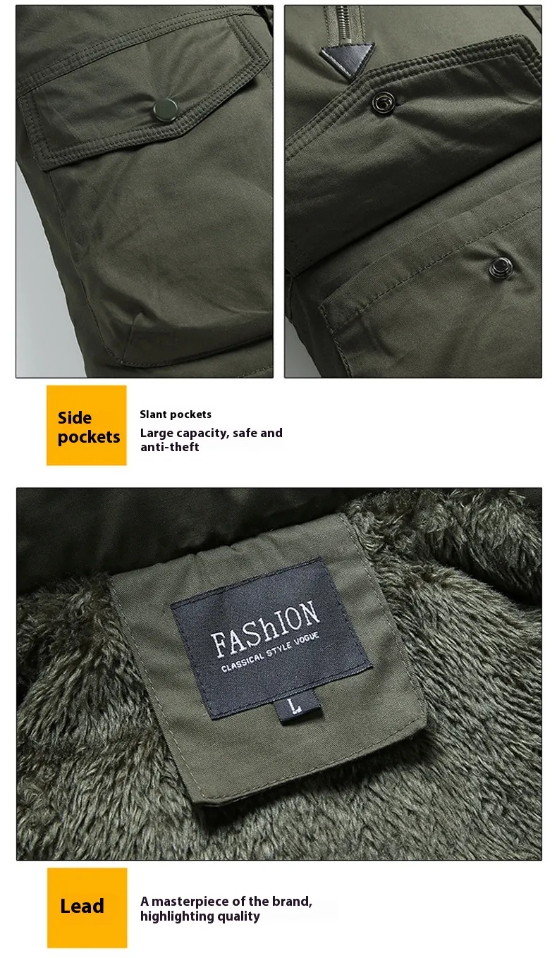 The Men’s Velvet Thermal and Thickened Cotton-Padded Coat is designed to adapt to a variety of occasions, making it a versatile addition to your winter wardrobe.