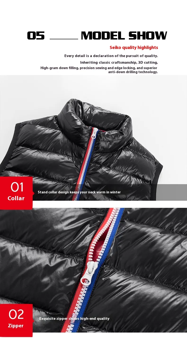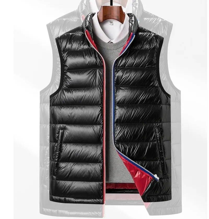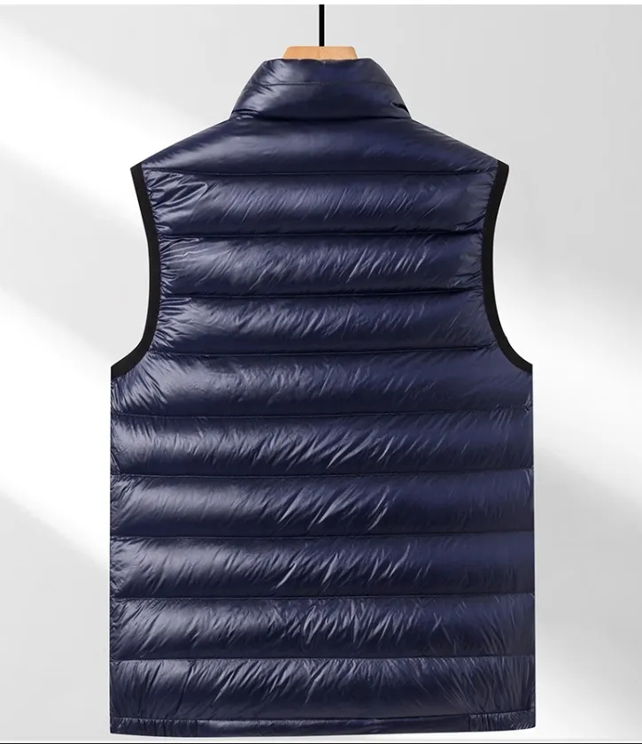 The classic stand collar design not only adds a touch of sophistication but also enhances the vest's ability to keep the neck area warm. The all-matching style makes it easy to pair with various outfits, from casual jeans and sweaters to dressier looks. Ideal for both outdoor activities and daily wear, this vest is a perfect choice for staying comfortable and looking sharp during the cold months.