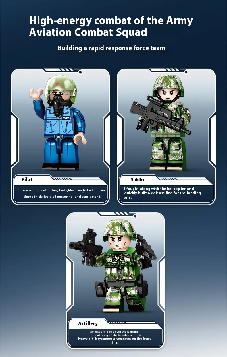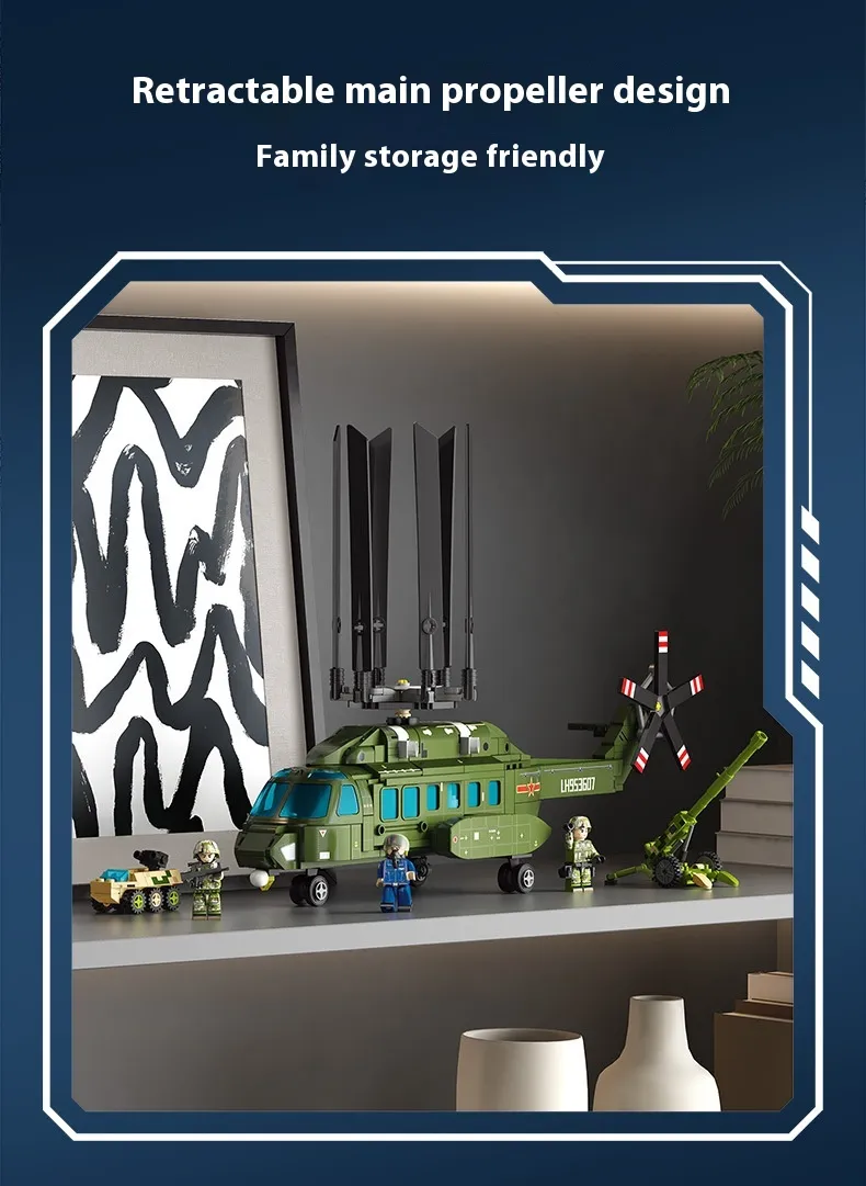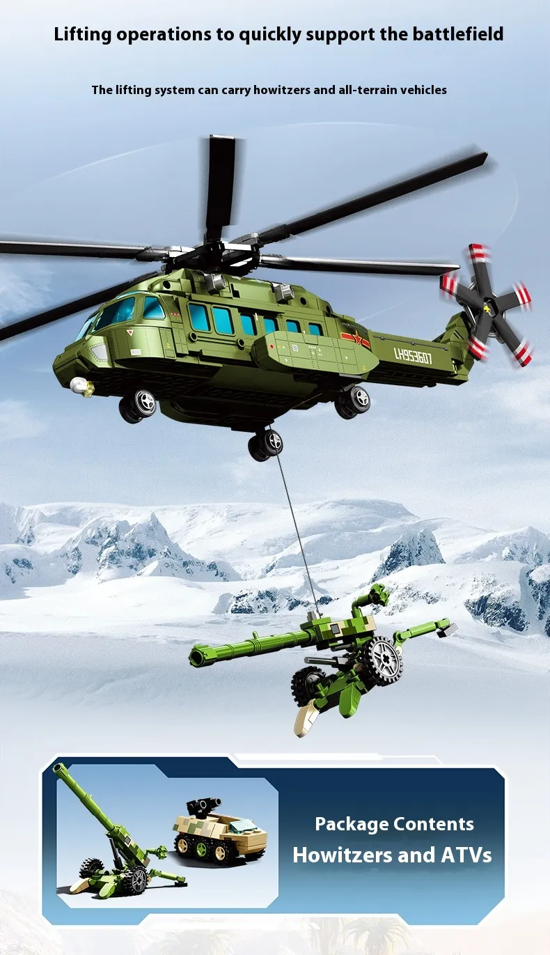 Military Straight 8L Multi-purpose Helicopter Assembly Model Boy Small Particles Assembled Building Block Toys