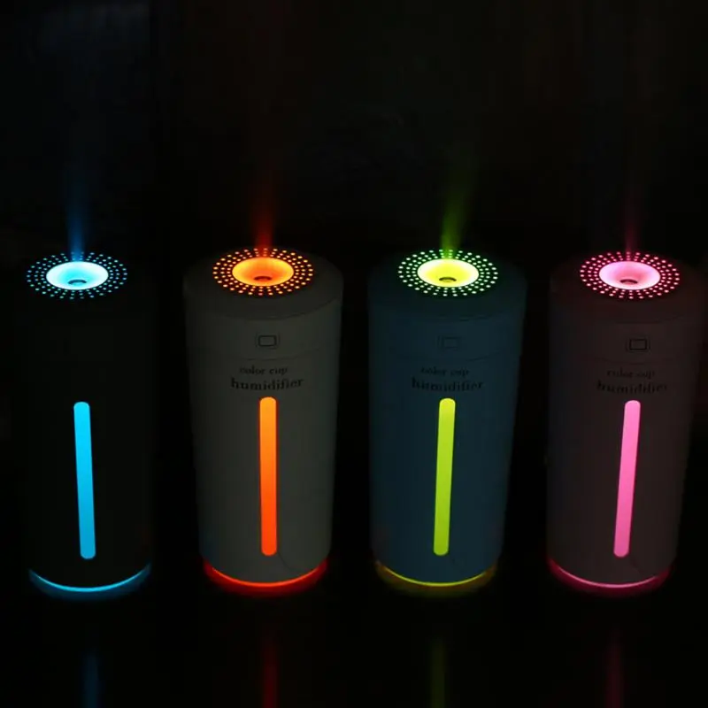 Mini Air Humidifier USB Ultrasonic Humidifier Car Aroma Diffuser Electric Essential Oil Diffuser Cup 7 Color LED Lights