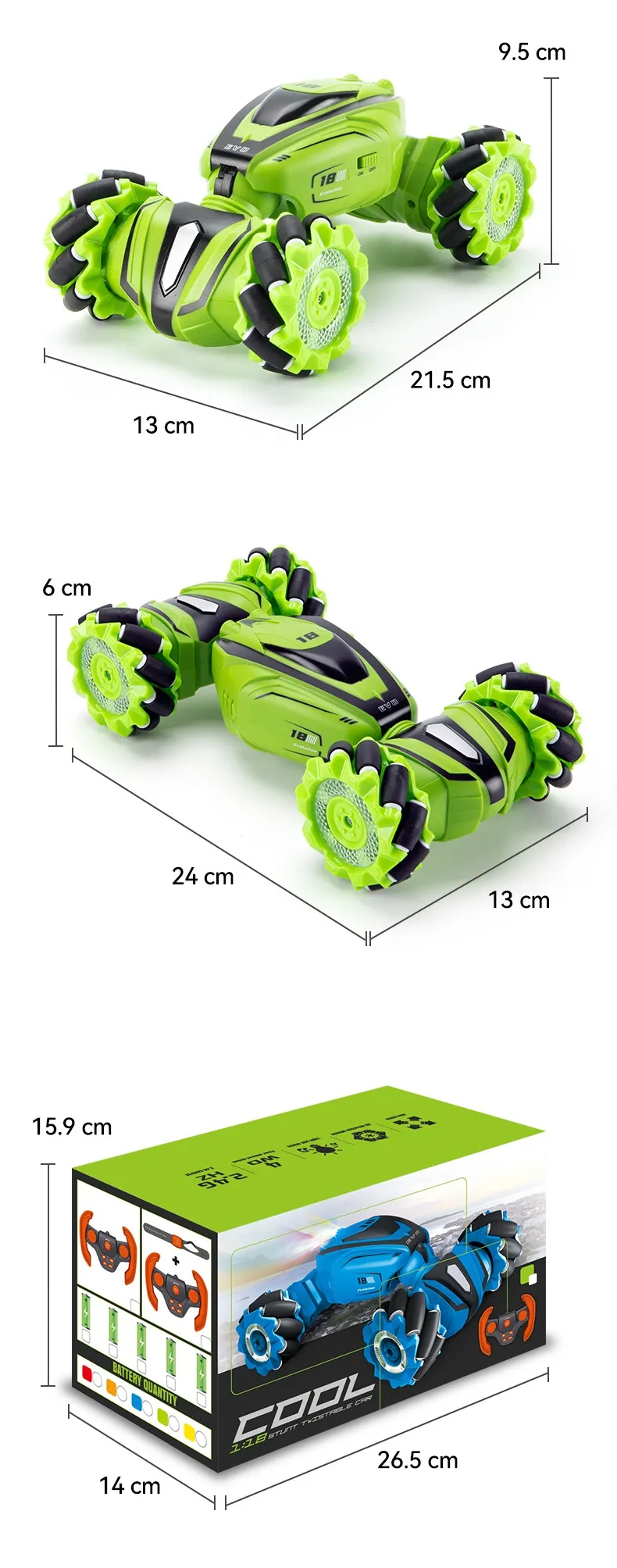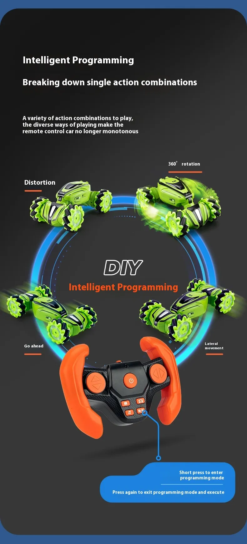 Equipped with advanced gesture-sensing technology, the car responds to simple hand motions, making it easy for kids to control its movements. The dual control modes allow kids to switch between remote and gesture control, providing a dynamic play experience that adapts to different styles and settings. With durable construction and powerful performance, this RC car is built to withstand fast-paced play, providing endless hours of excitement for kids.