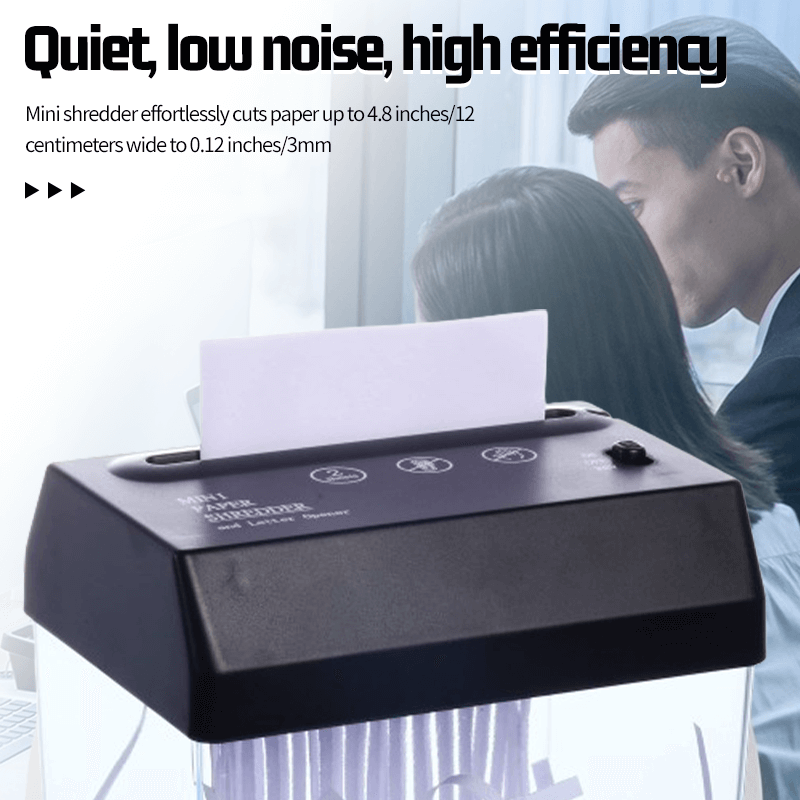 - 【Efficient Shredding】This mini paper shredder effortlessly shreds paper up to 0.12"/3mm in a width of 4.8"/12cm. The built-in letter opener makes it easy to open envelopes without damaging the contents.