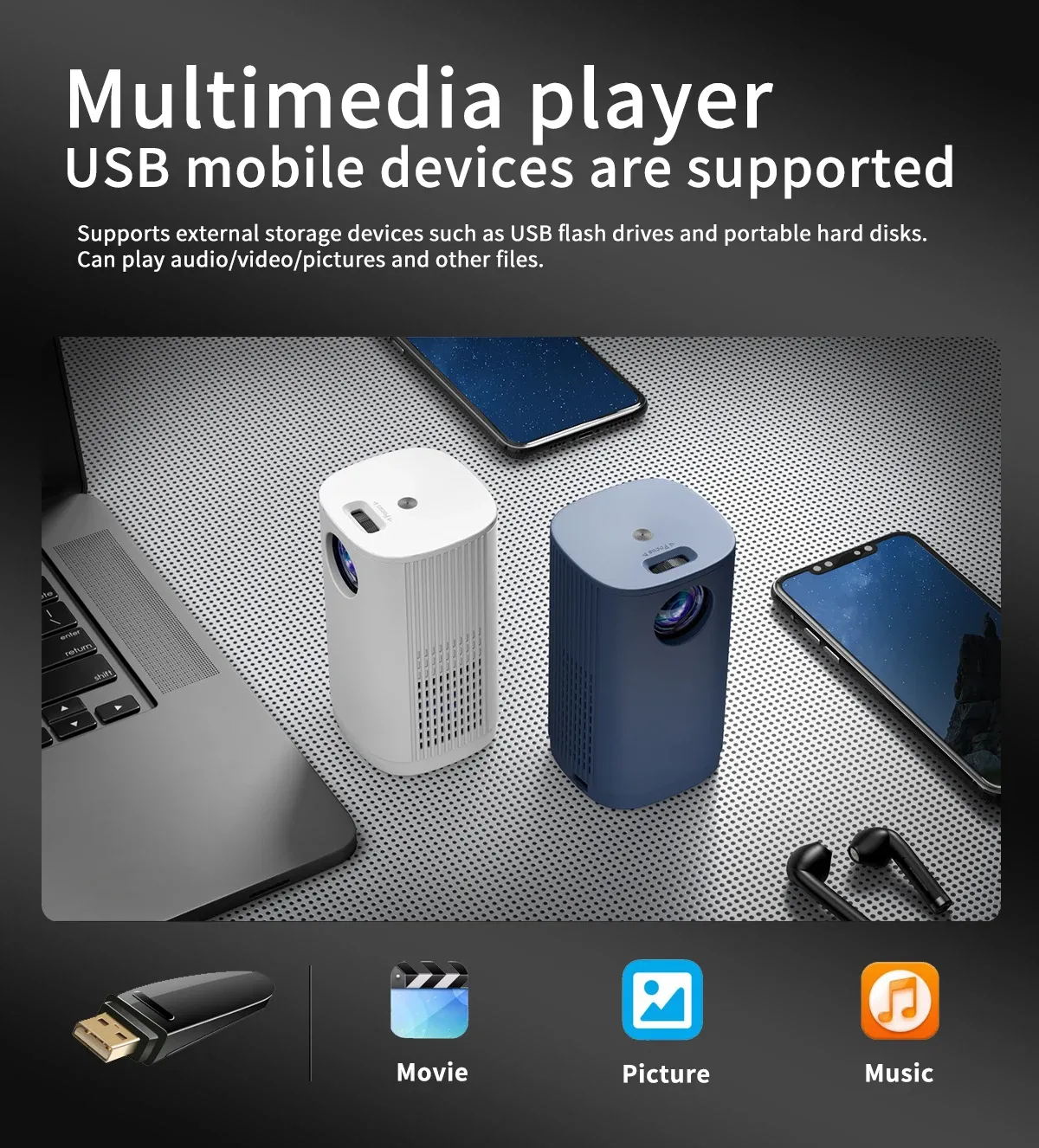Equipped with advanced LED technology, the Mini Projector delivers vibrant colors and sharp details for an immersive viewing experience. Its lightweight and portable design makes it easy to carry, allowing you to take your entertainment with you wherever you go. The multi-screen version supports a wide range of devices, providing HDMI, USB, and wireless screen mirroring options, ensuring that you can connect your mobile phone or other devices without hassle. The projector also features a built-in speaker for enhanced audio, eliminating the need for external speakers during casual viewings.