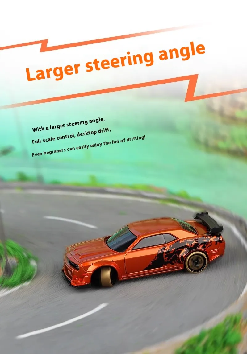 Ideal for beginners, this 1/16 scale car is ready to run out of the box and offers user-friendly controls for an enjoyable drifting experience.