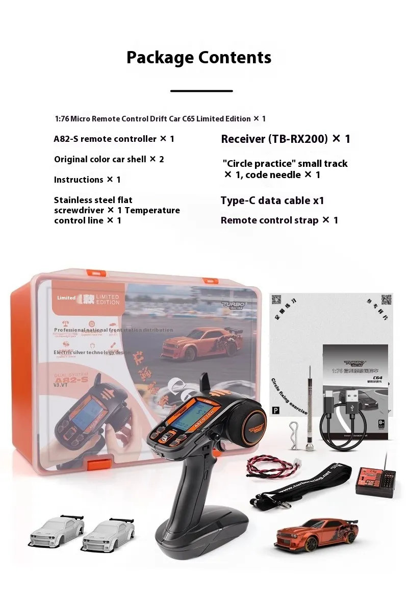This ultra-compact 1:76 scale drift car is equipped with a gyro for enhanced stability and precision control. Its small size makes it perfect for indoor drifting sessions