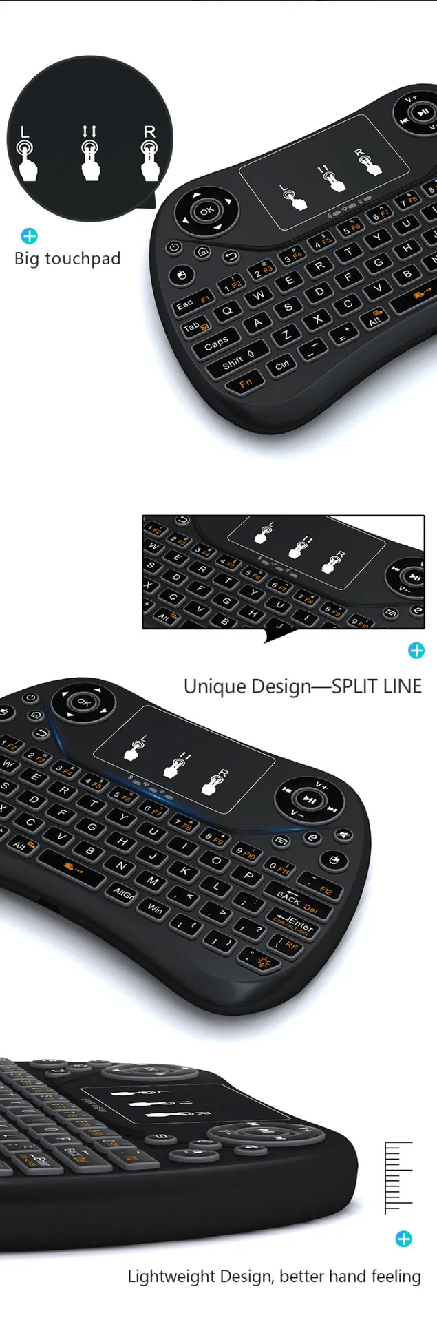 Designed for portability and functionality, the keyboard is lightweight, easy to carry, and ideal for both home entertainment systems and on-the-go professionals. The multi-color backlight allows you to switch colors based on your mood or environment, while the touchpad adds mouse-like navigation to this already versatile device.