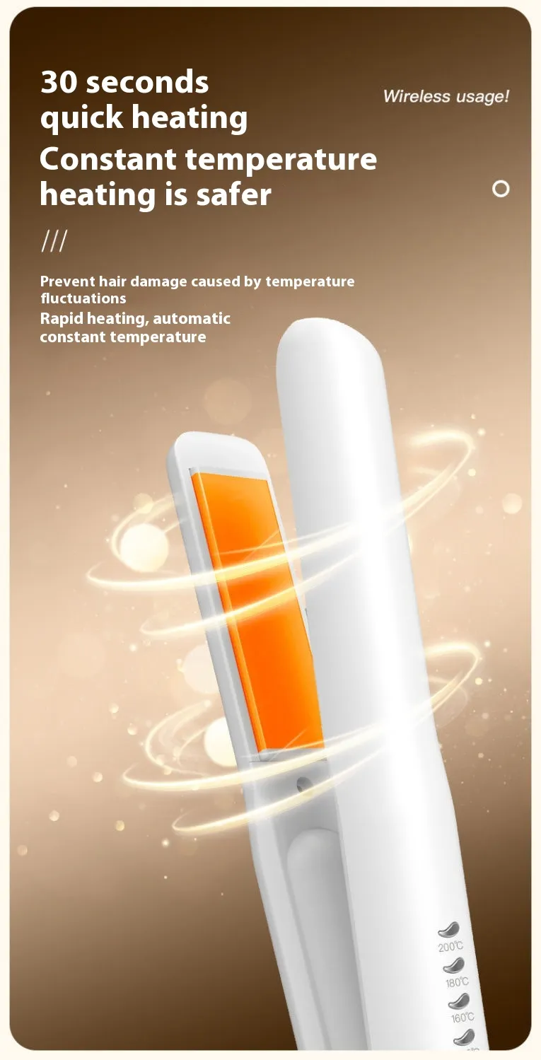 The Mini Wireless Rechargeable Splint Hair Straightener and Hair Curler is a versatile hair styling tool that offers the convenience of