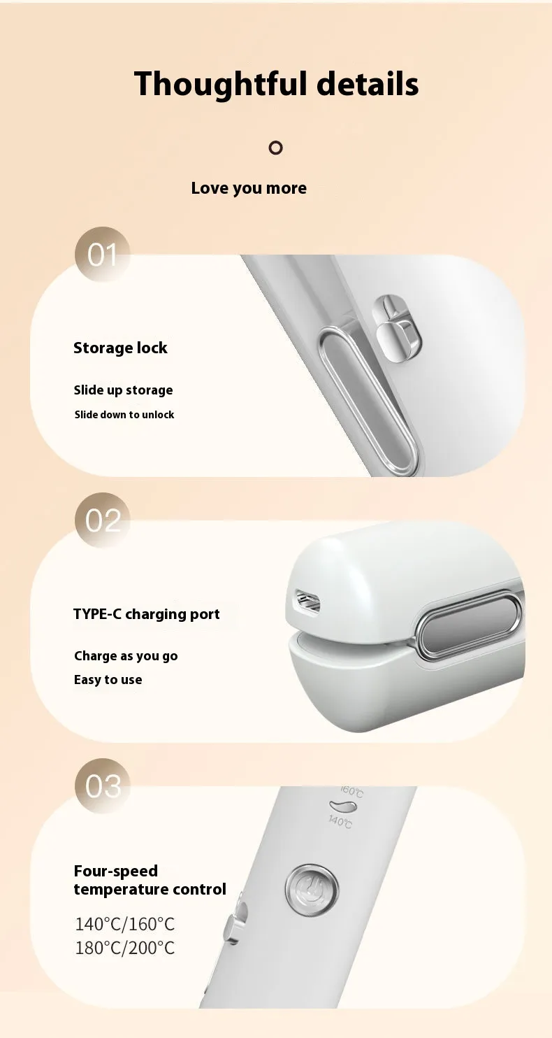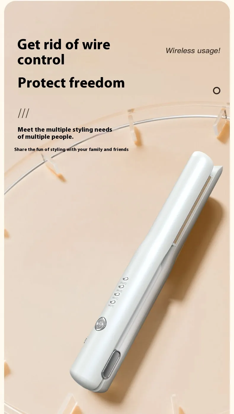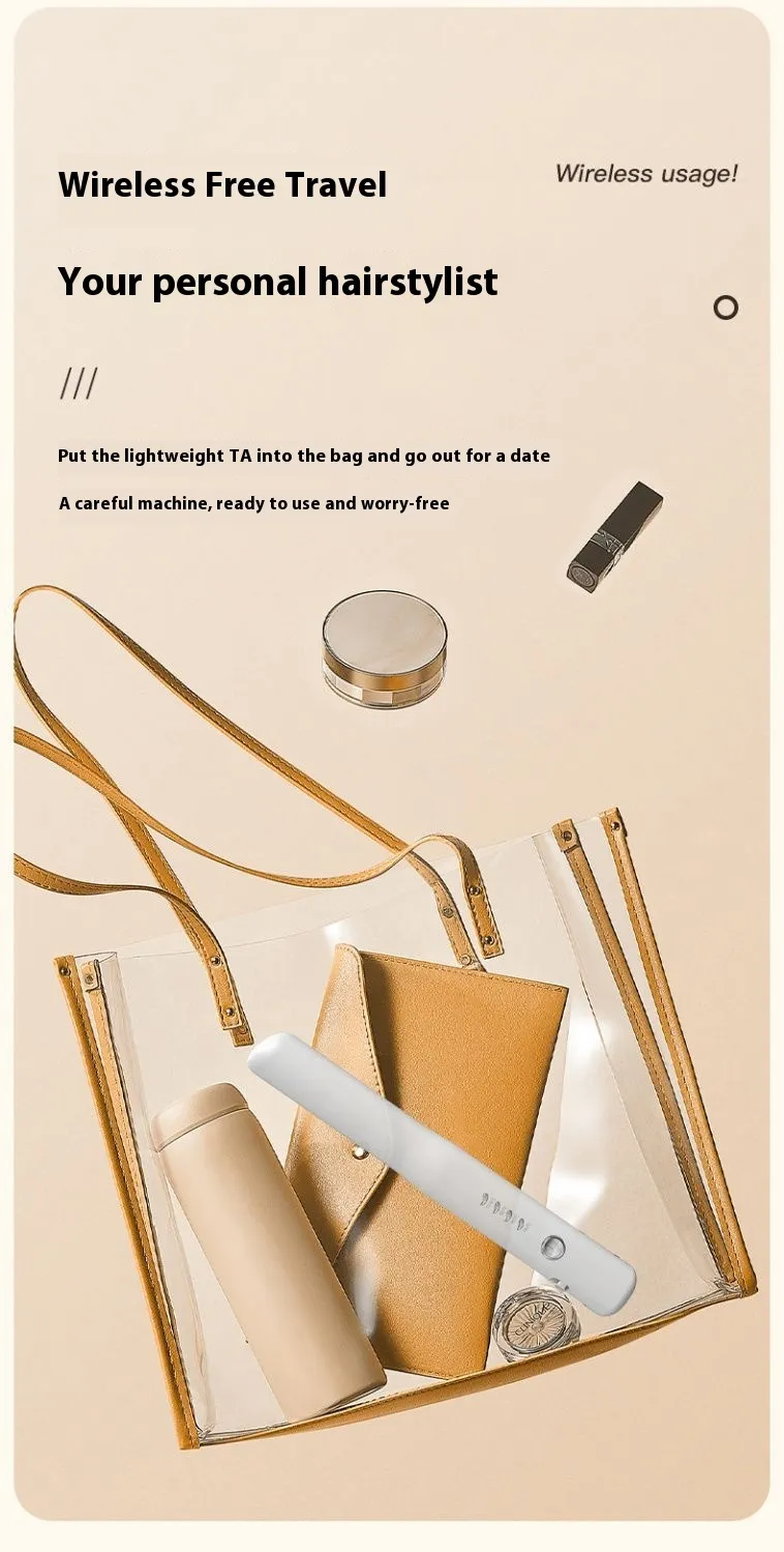 The Mini Wireless Rechargeable Splint Hair Straightener and Curler is suitable for all hair types, including dry and slightly damp hair. Its 3D floating panel adapts to different hair volumes, ensuring smooth styling without pulling or tugging. Whether you're preparing for a big event or just need a quick touch-up, this tool provides salon-quality results in a compact form.To prolong the life of your hair straightener and curler, ensure it is fully charged before use and avoid exposure to water. Store it in a cool, dry place when not in use, and clean the ceramic plates with a soft, damp cloth to maintain their effectiveness.