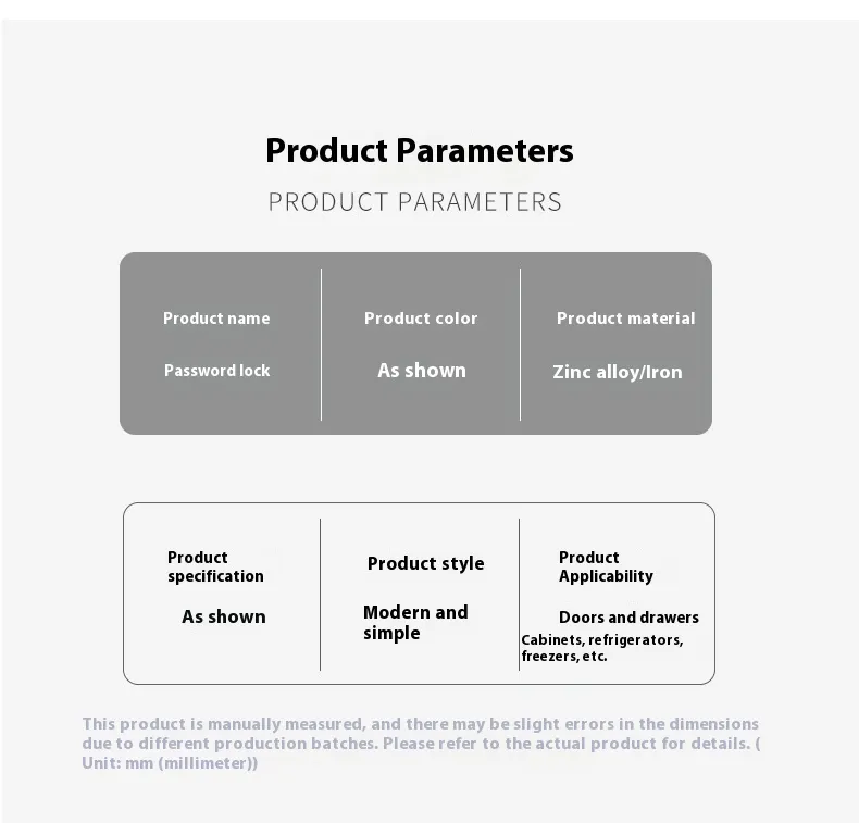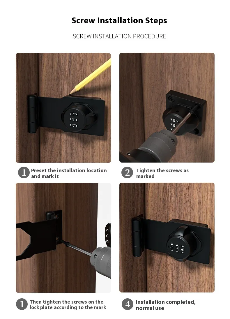 Specifications: 4.5-inch 90 ° password door lock bright silver [screw installation], 4.5-inch 90 ° password door lock matte black [screw