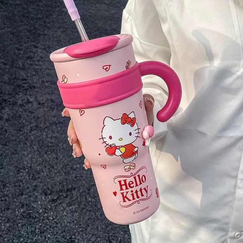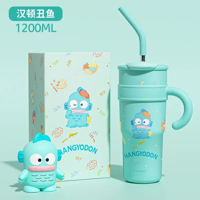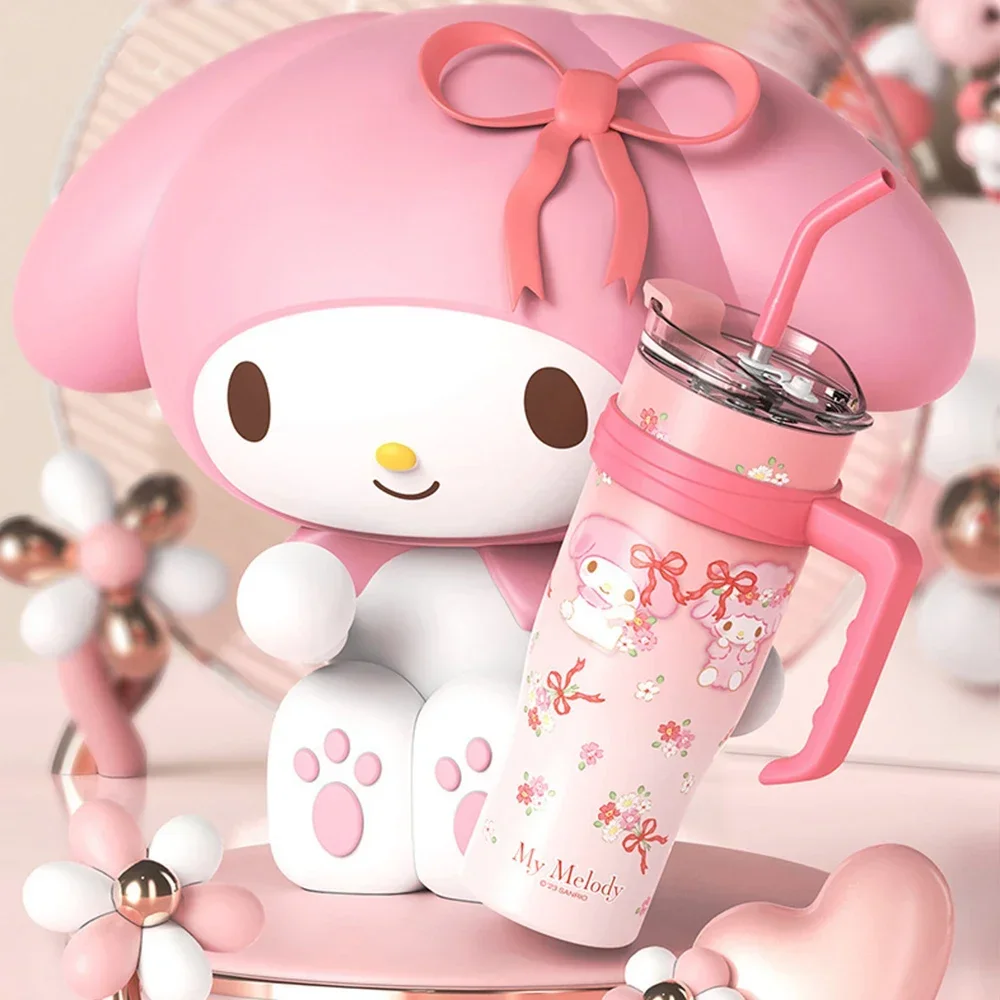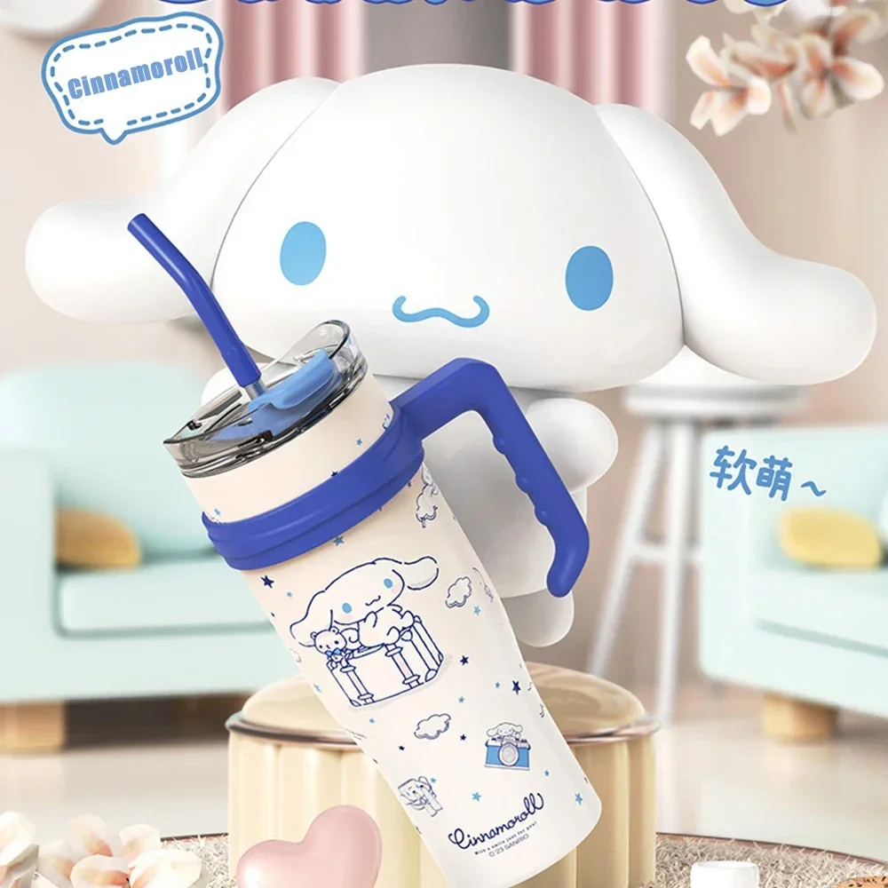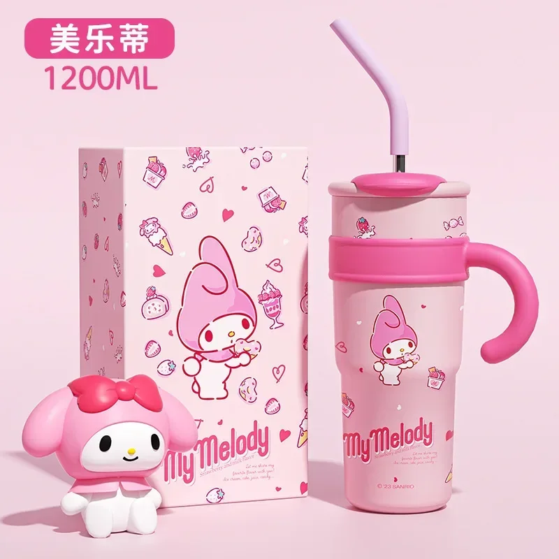 MINISO 1200ml Sanrio Thermos Bottle Cold Ice Cute Hello Kitty Kuromi Cinnamoroll Melody Stainless Steel Water Bottle with Straw 2024