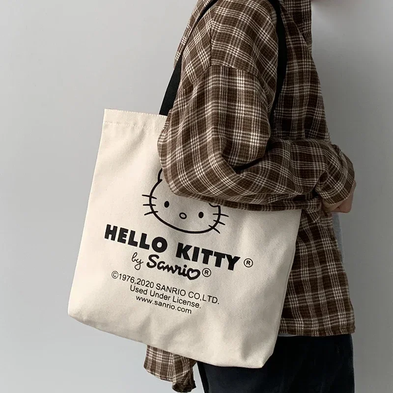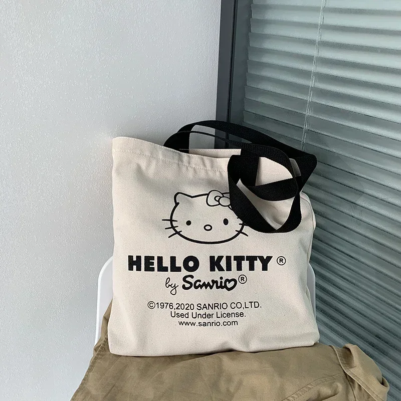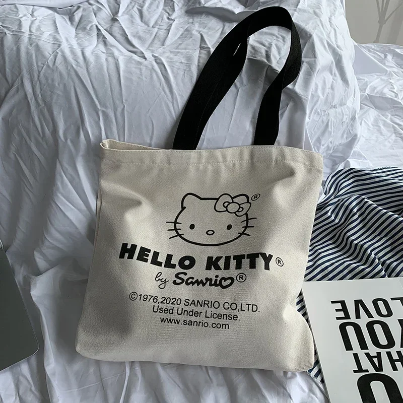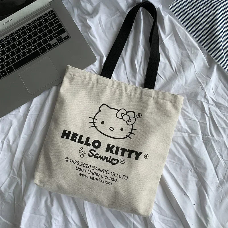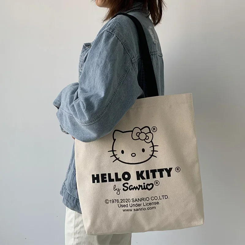 MINISO Disney Women Cute Hello Kitty Canvas Tote Bag Femme Shopping Shoulder Bag, Travel Tote, Luxury Designer Handbag