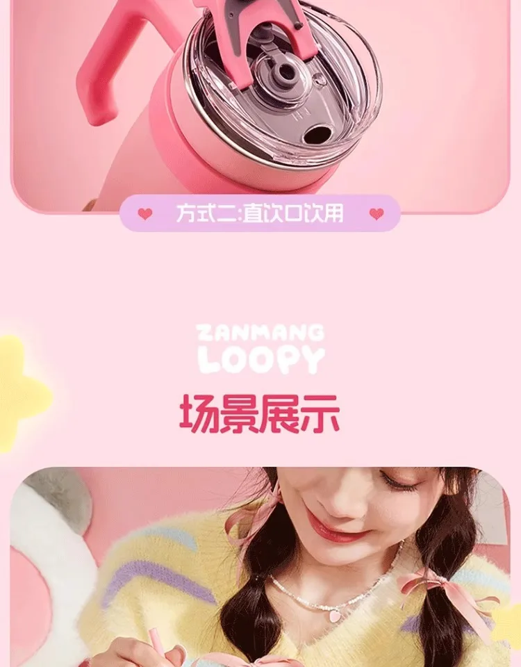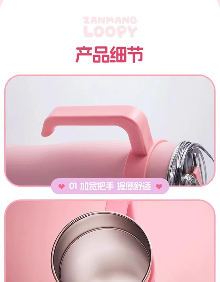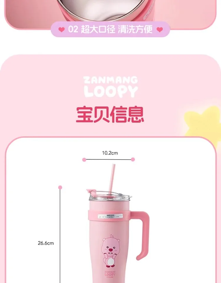 The MINISO Loopy Series Jumbo Straw Cup stands out with its vibrant, high-color-value design. The cup features a playful and cute graphic that appeals to girls of all ages. Made from durable stainless steel, it boasts a sleek and shiny finish that adds a touch of sophistication. The jumbo size ensures that it can hold a substantial amount of liquid, making it ideal for those who need a larger serving of their favorite drinks. The integrated straw adds to the convenience, allowing for easy sipping on the go.