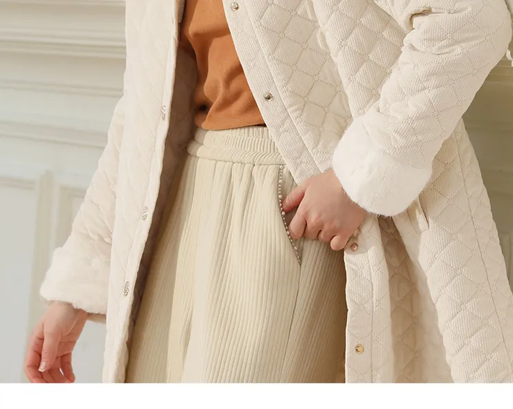 Mink-like Collar Rhombus Cotton-padded Coat Women's Winter Cotton Padded Coat