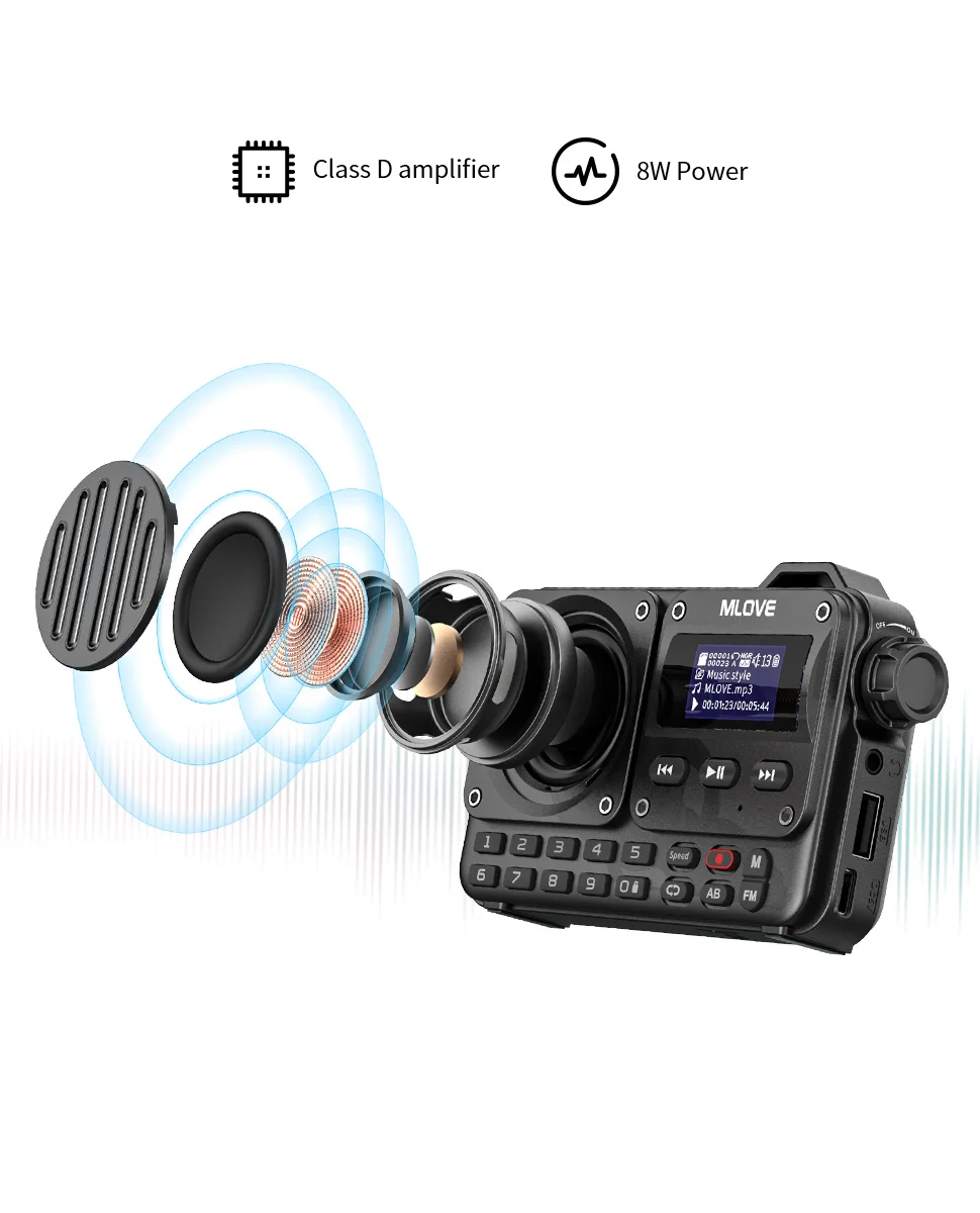 - TF Card: Insert a memory card for instant access to your music library.